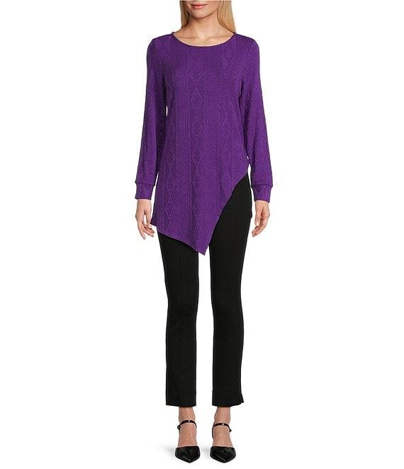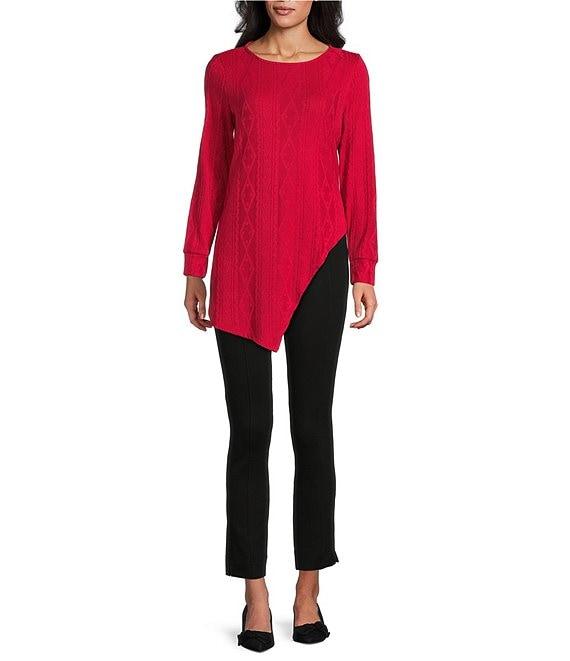 Slim Factor by Investments Riley Long Sleeve Asymmetrical Hemline Crew Neckline Knit Top