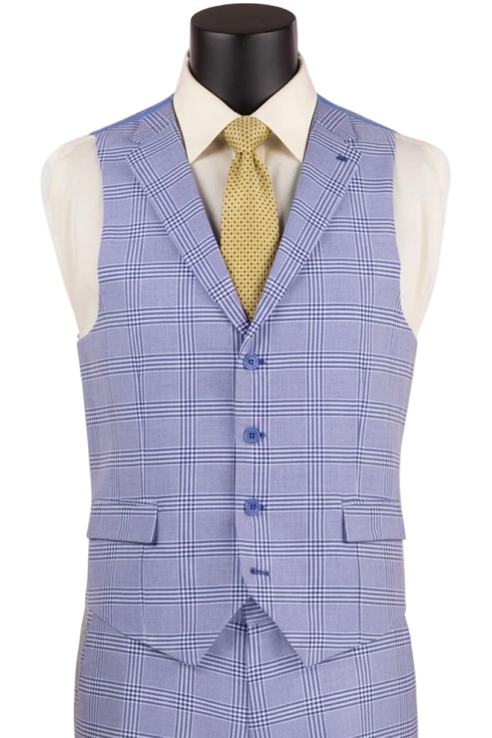 Slim Fit Suit Windowpane 3 Piece with Vest in Sky Blue