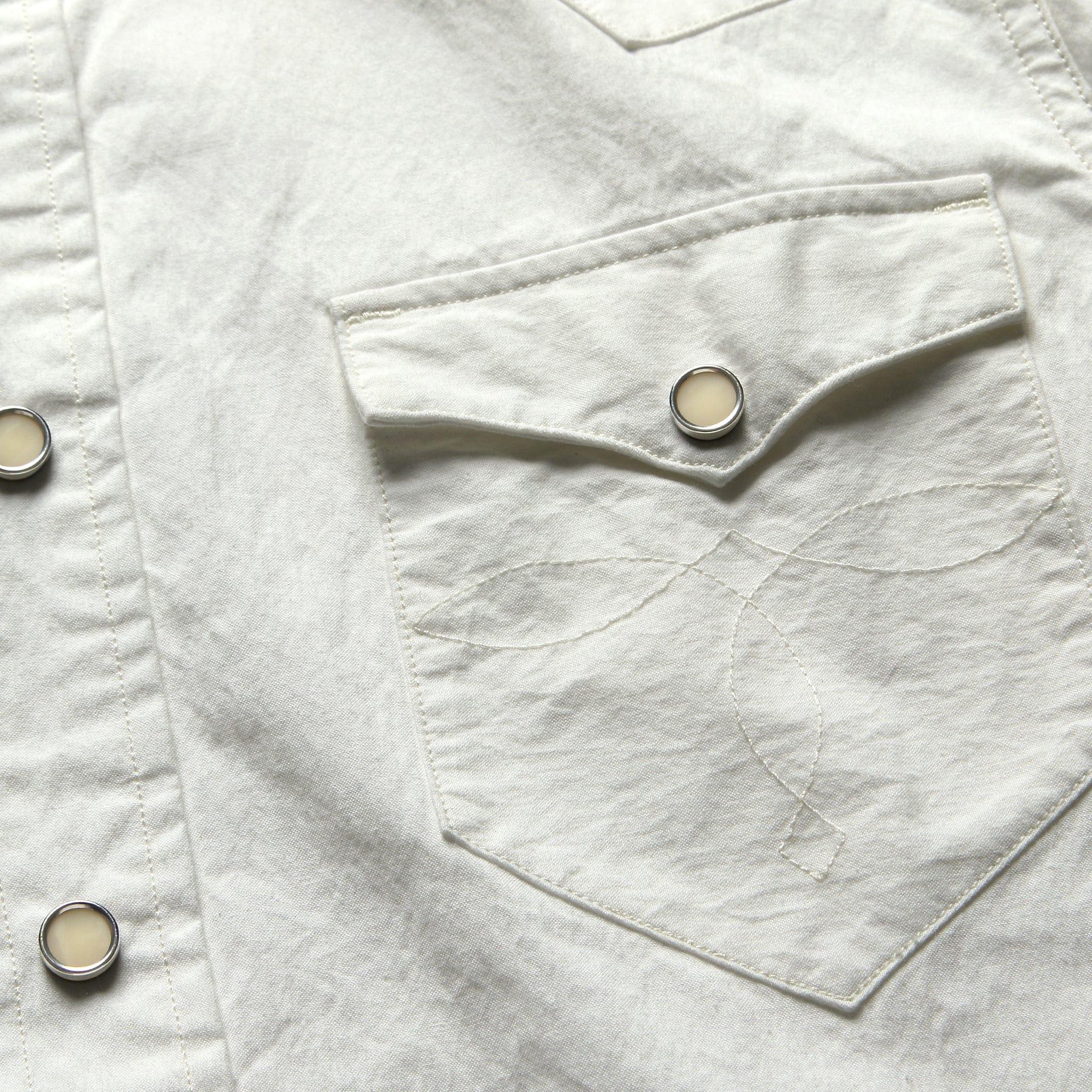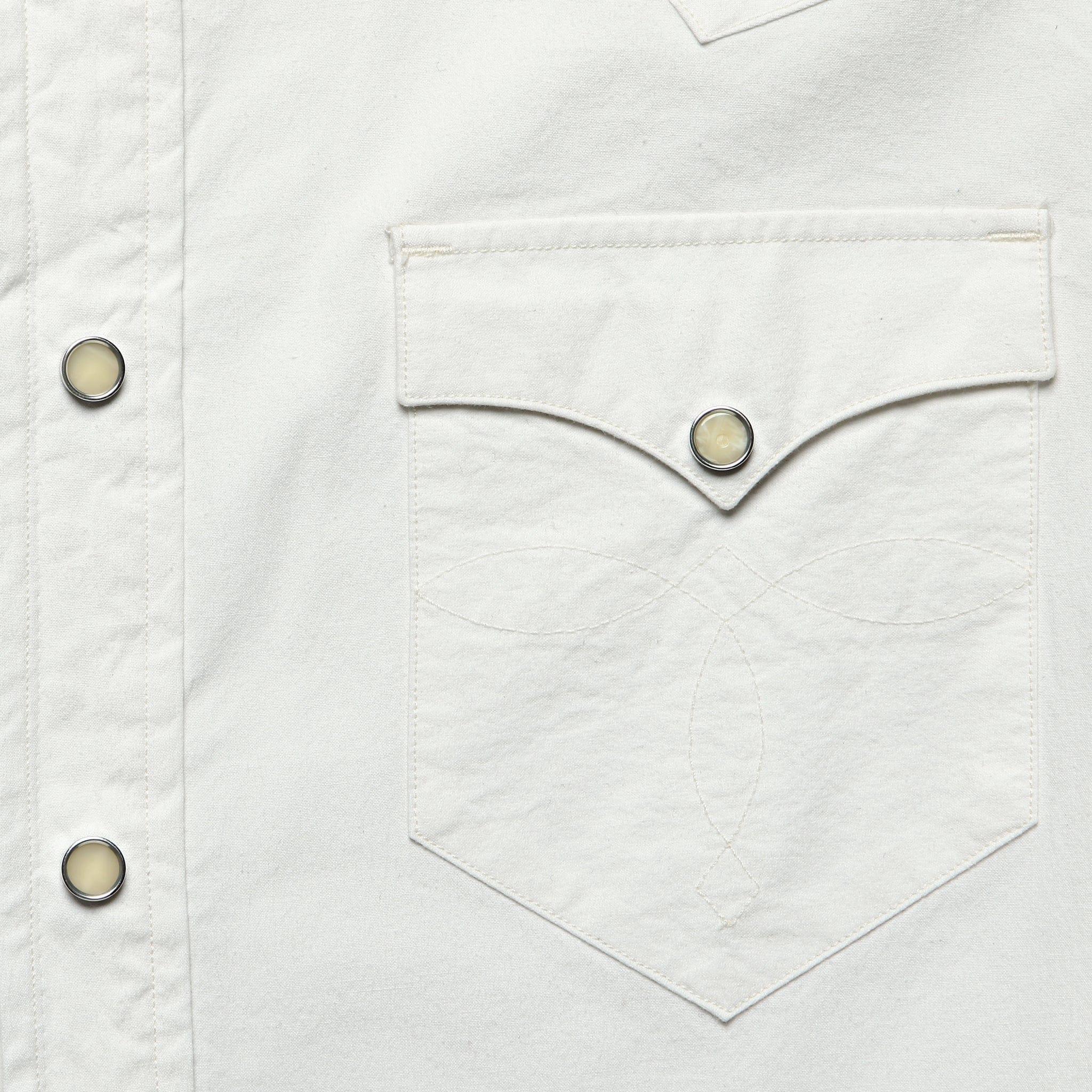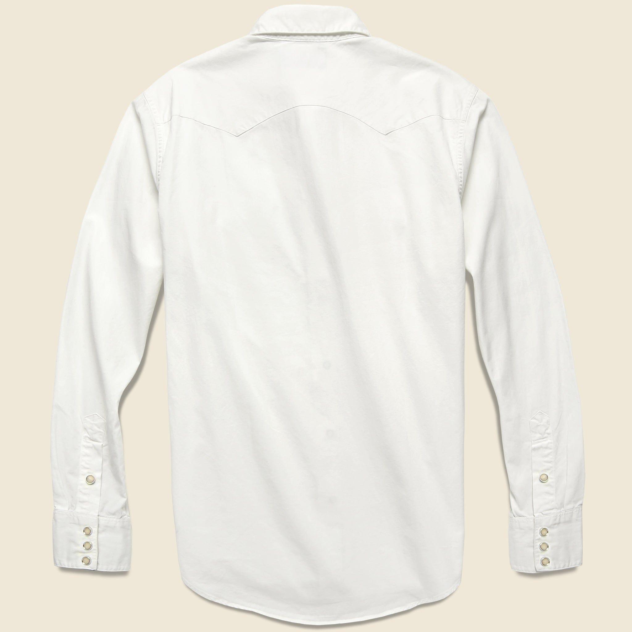 This Western Shirt is made from crisp, lightweight cotton poplin and features a classic Western-style front and back yoke to look like the real McCoy. Tailored with RRL’s slimmest fit, it’s cut trim through the body and sleeve and detailed with a pair of chest pockets, pearl snaps, and a silver-tone concho top closure to finish it off. Genuine Western styling Crisp white cotton poplin High rim pearl-snap placket Western-inspired yoke and pocket flap details Point collar Silver-toned concho button at neck Two chest flap pockets Slim fit that runs true to size We recommend taking your normal size or sizing up for a more relaxed fit Materials: 100% cotton The following measurements are for size Medium: Chest: 41” | Shoulder: 17” | Sleeve: 32 ½” | Length: 30”