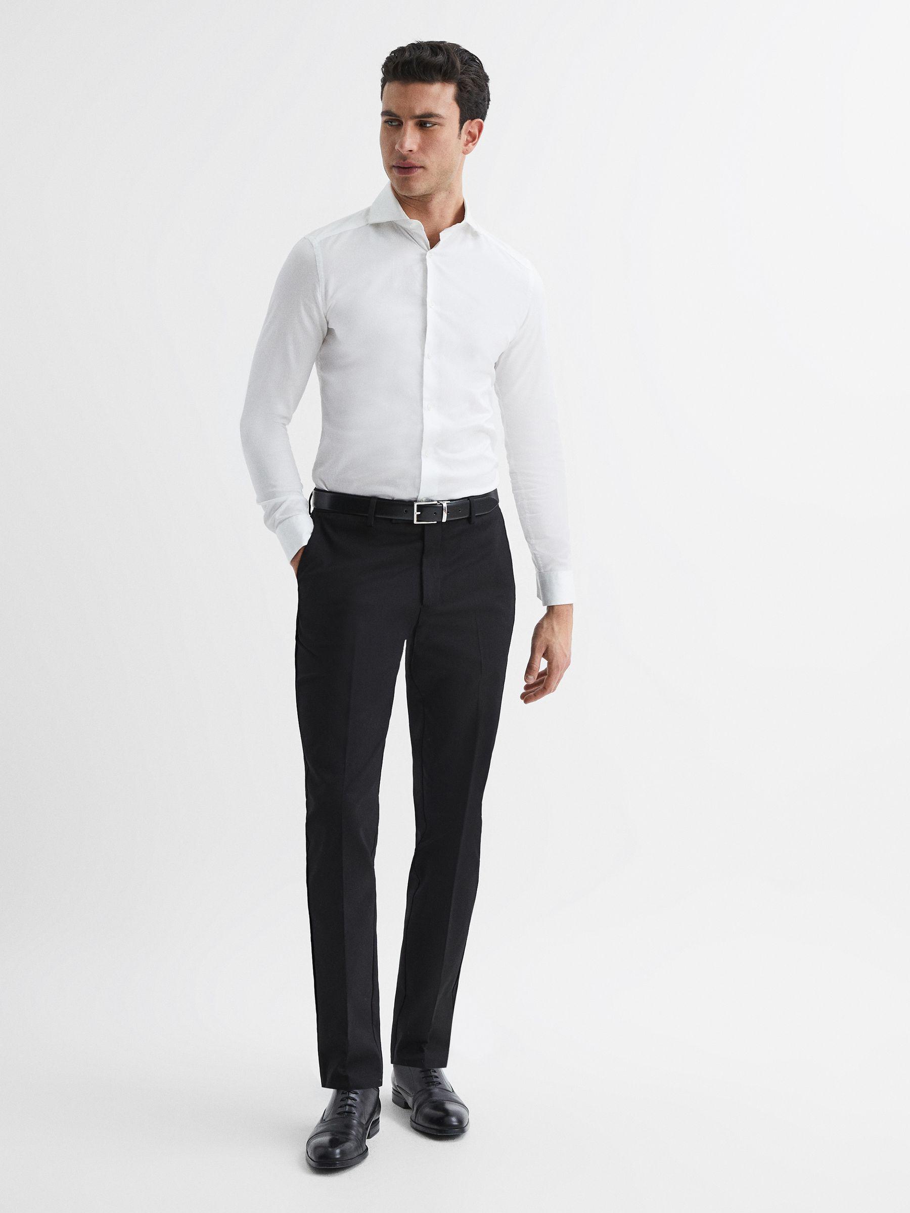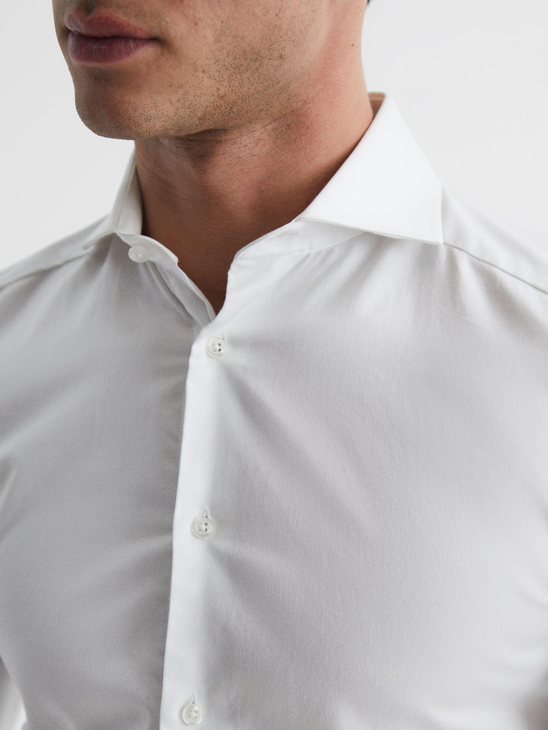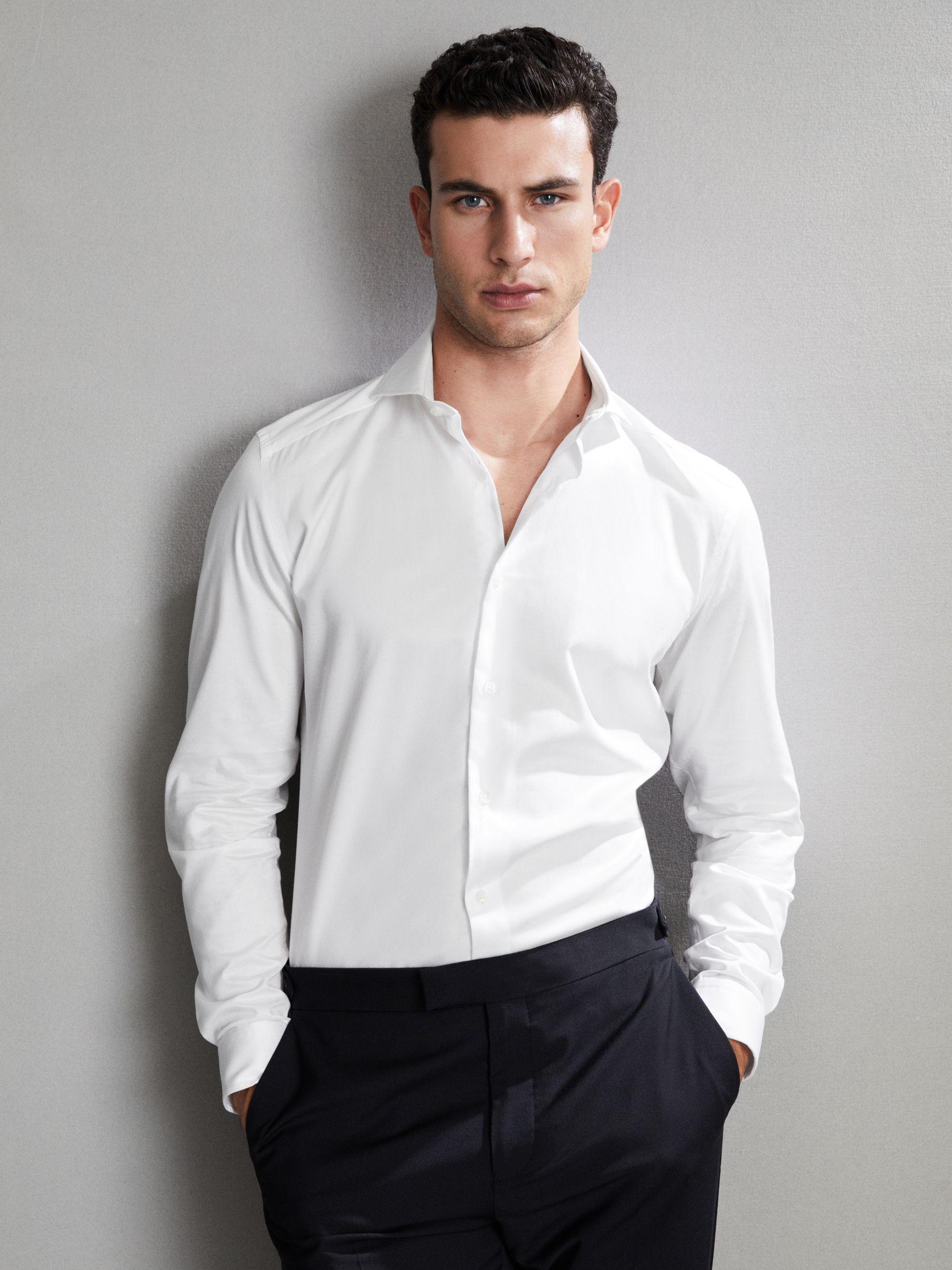A two-fold cotton construction gives the white Storm shirt a superior hand feel, enhanced durability, and a lustrous sheen. Its classic button-through shape is finished with a cutaway collar and a slim fit. Two-fold cotton construction for a superior hand-feel, enhanced durability and a lustrous sheen. Cutaway collar. Long sleeves. Buttoned cuffs. Button-front closure. Slim fit. The model is wearing a size M. Measurements of model: 6ft 2'' / 188cm.