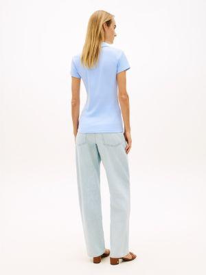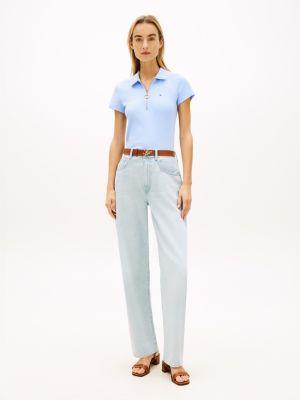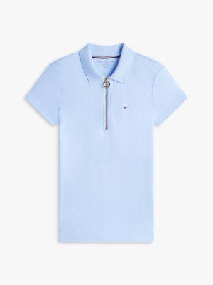 Tommy Hilfiger women's polo. Designed in a trim fit from premium cotton, this short-sleeve polo has an elevated feel, thanks to the gold-tone zip placket.
