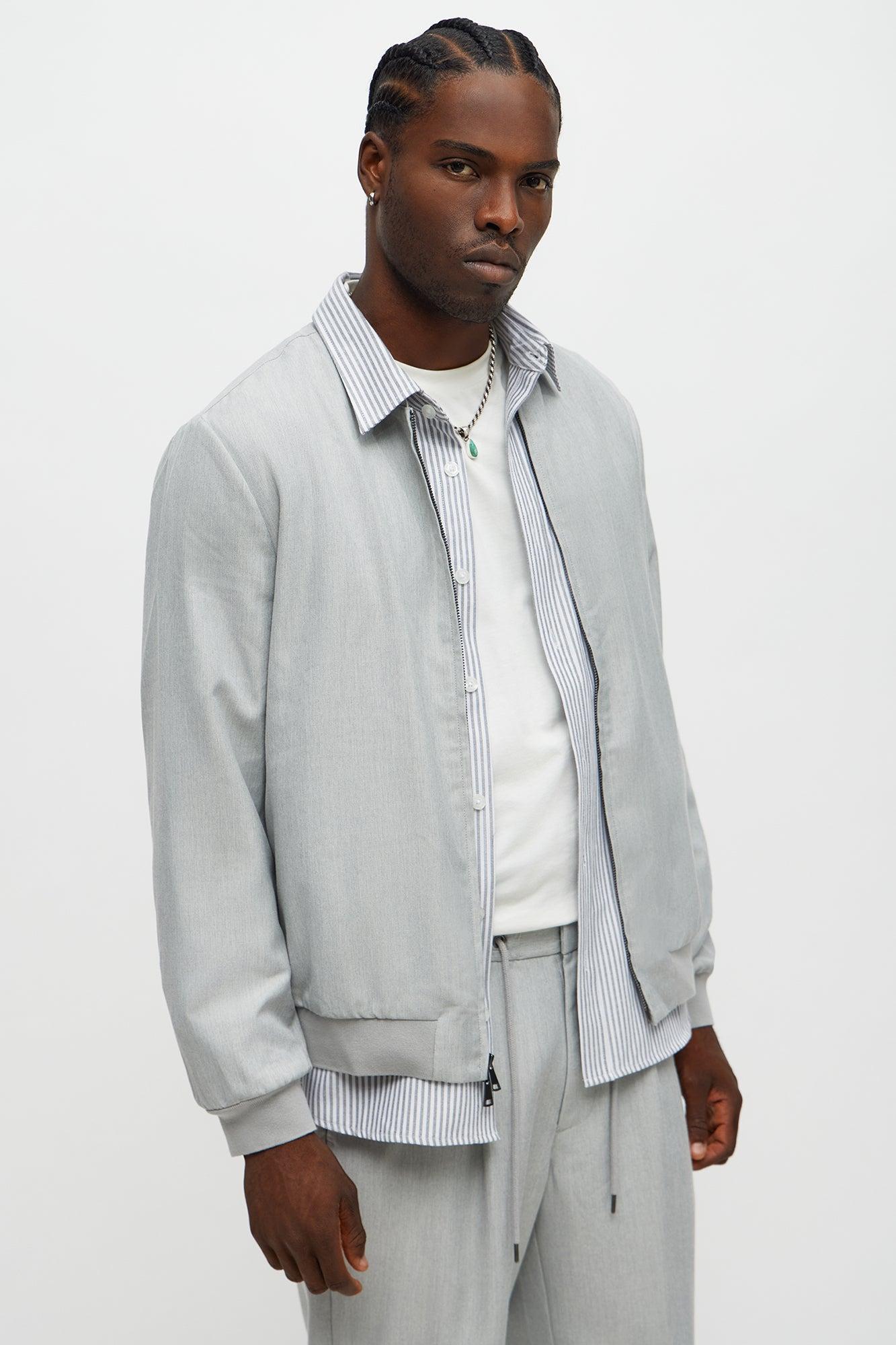 Slim Modern Two-Way Zipper Everyday Bomber - Light Grey