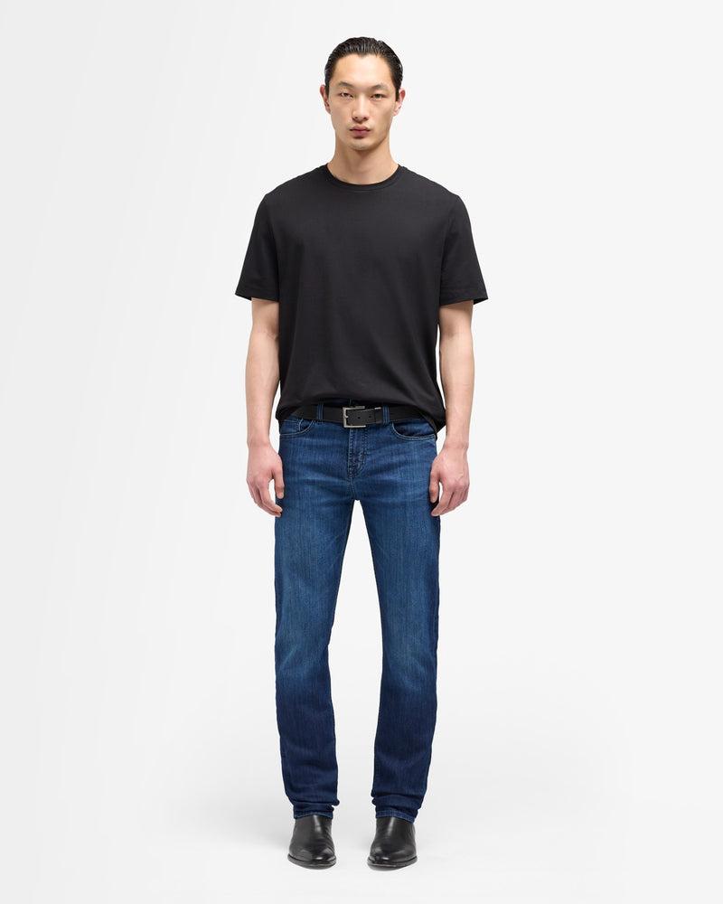 Fits like: A classic slim fit from hip to hem, for a look that's streamlined but not too skinny. Feels like: Premium Japanese lightweight denim with soft feel and breathable stretch. The Details: Dark wash denim Airweft fabric Japanese denim Classic zip closure