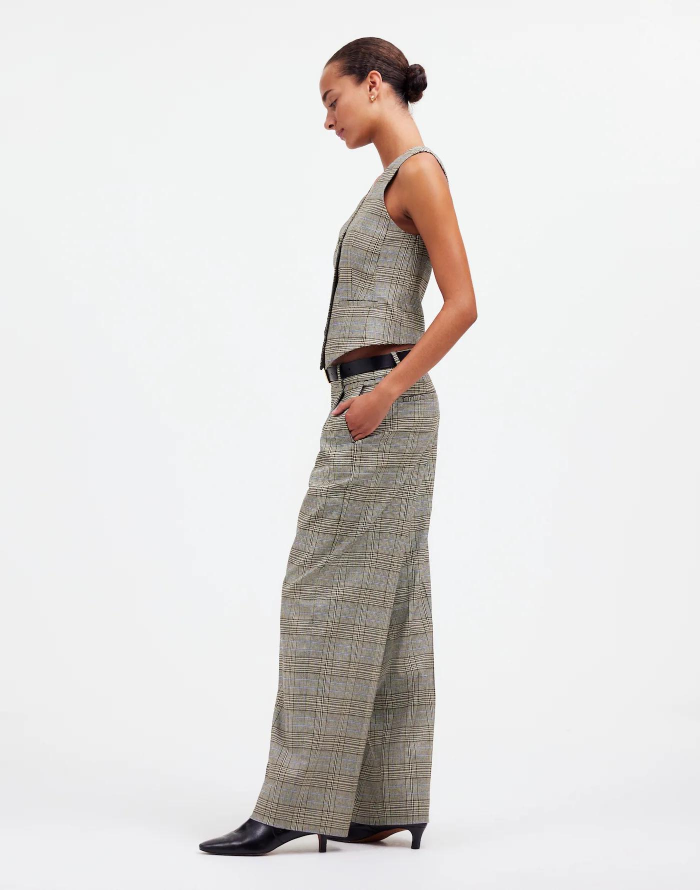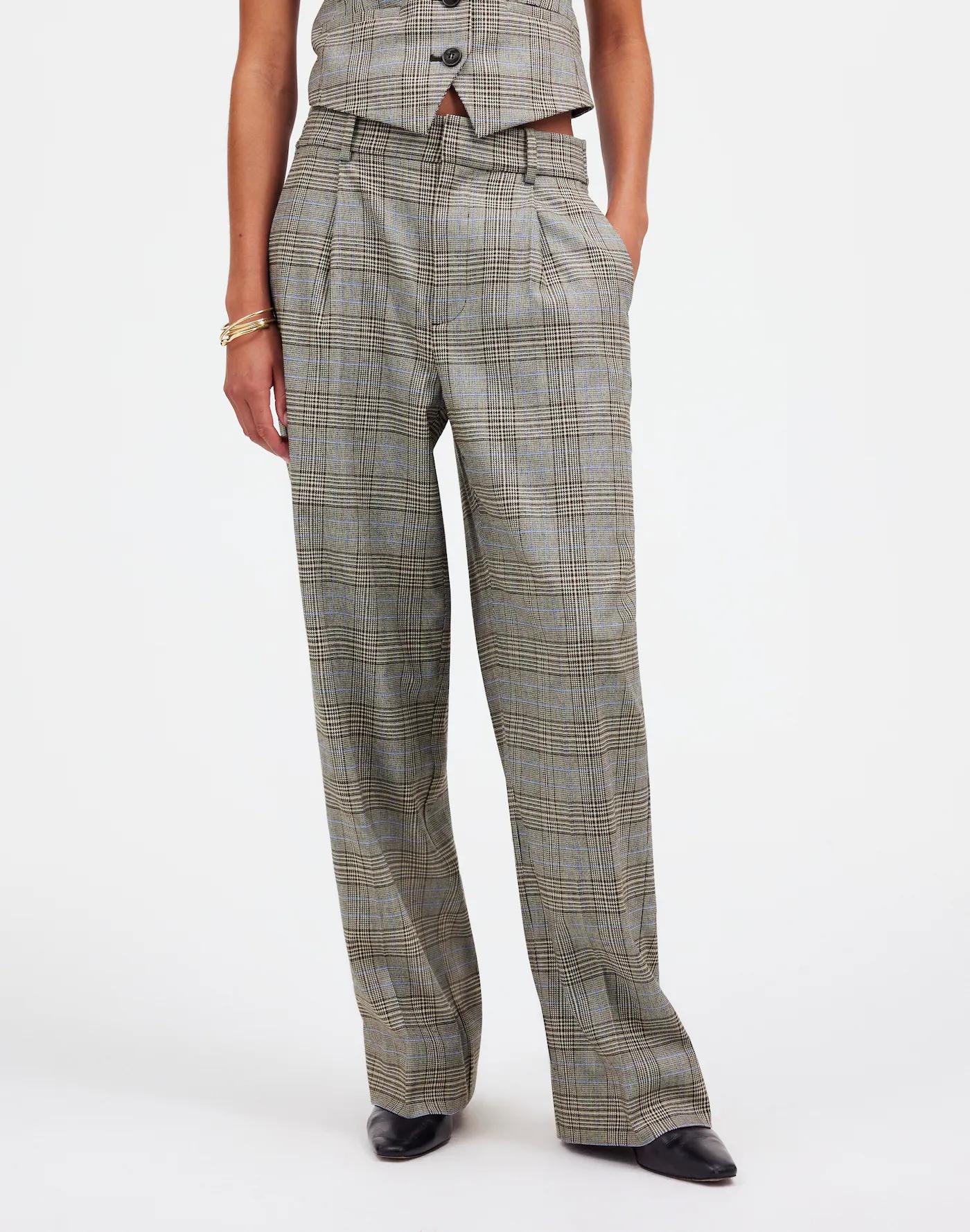 Slouchy Straight Pants in Yarn-Dyed Plaid