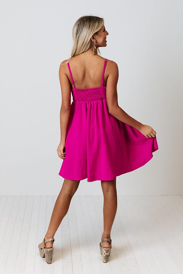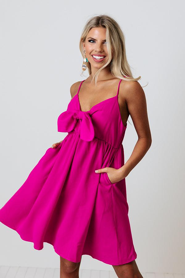 All eyes are sure to be on you in our flirty neon fuchsia 'Slow Dance Romance' dress featuring lightweight flowy material, a flirty v-cut neckline with a front tie detail, adjustable spaghetti straps, and a relaxed skirt silhouette that falls into a straight mid-thigh length hemline! Measurements S variant has a Bust of 30", a Hip of 36", a Length of 27", a Waist of 28". M variant has a Bust of 32", a Hip of 38", a Length of 27.5", a Waist of 30". L variant has a Bust of 34", a Hip of 40", a Length of 28", a Waist of 32".