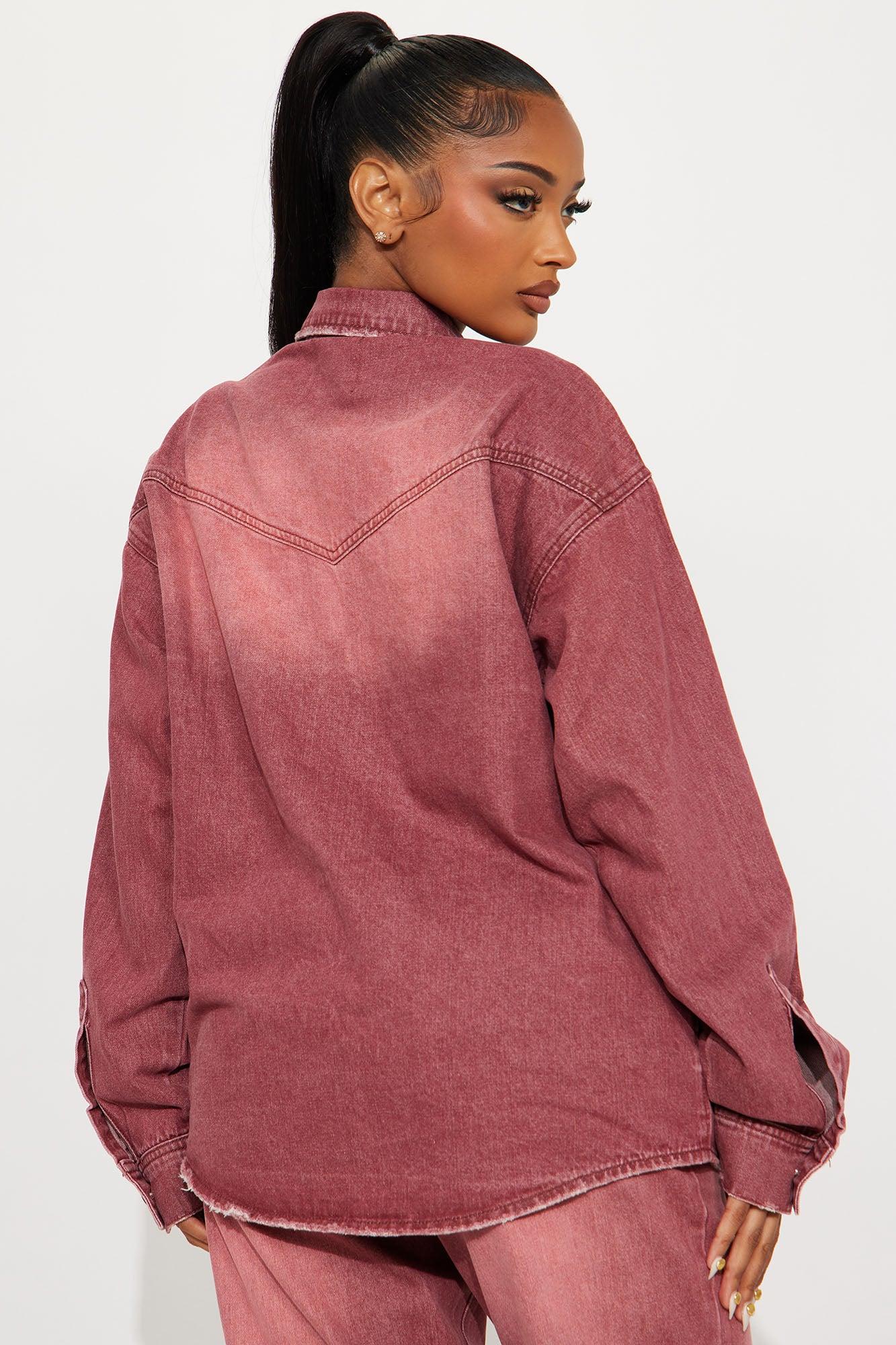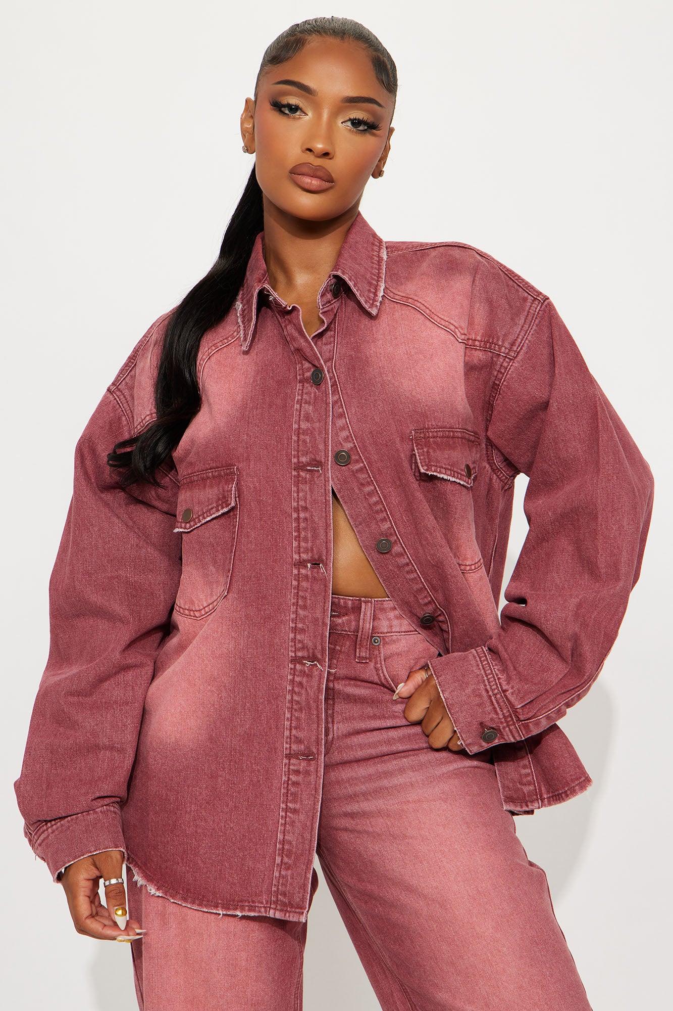 Available In Brown And Burgundy. Pair With Slow Fade Straight Leg Jeans Denim Shacket Collar Long Sleeve Button Closure Pockets Unlined Non-Stretch Disclaimer: Due To The Specialized Wash & Distressing Process, Each Garment Is Unique. 75% Cotton 25% Polyester Imported