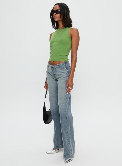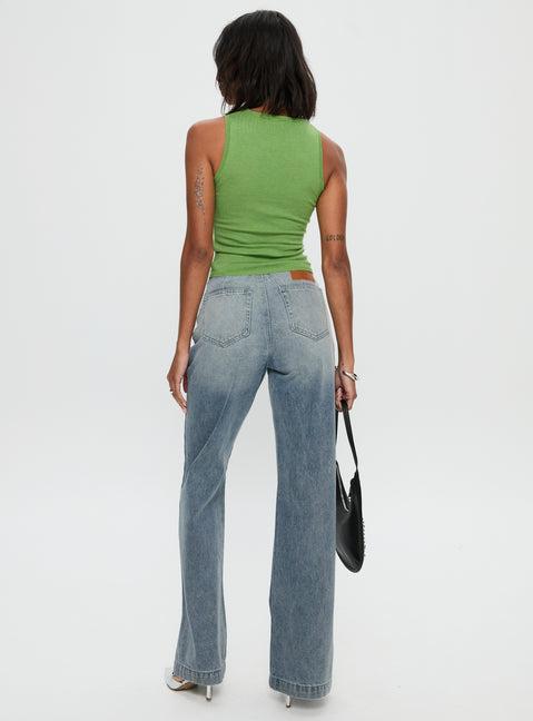 Slow Ride Mid Rise Bootleg Belted Jeans Light Blue
