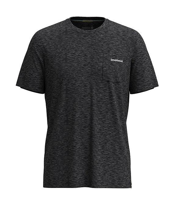 From SmartWool, this t-shirt features: Heather tone Crew neckline Short sleeves Left chest pocket Offset shoulder and side seams designed to help increase comfort and minimize chafing Regular fit Merino wool/recycled polyester/hemp Machine wash/tumble dry Imported.