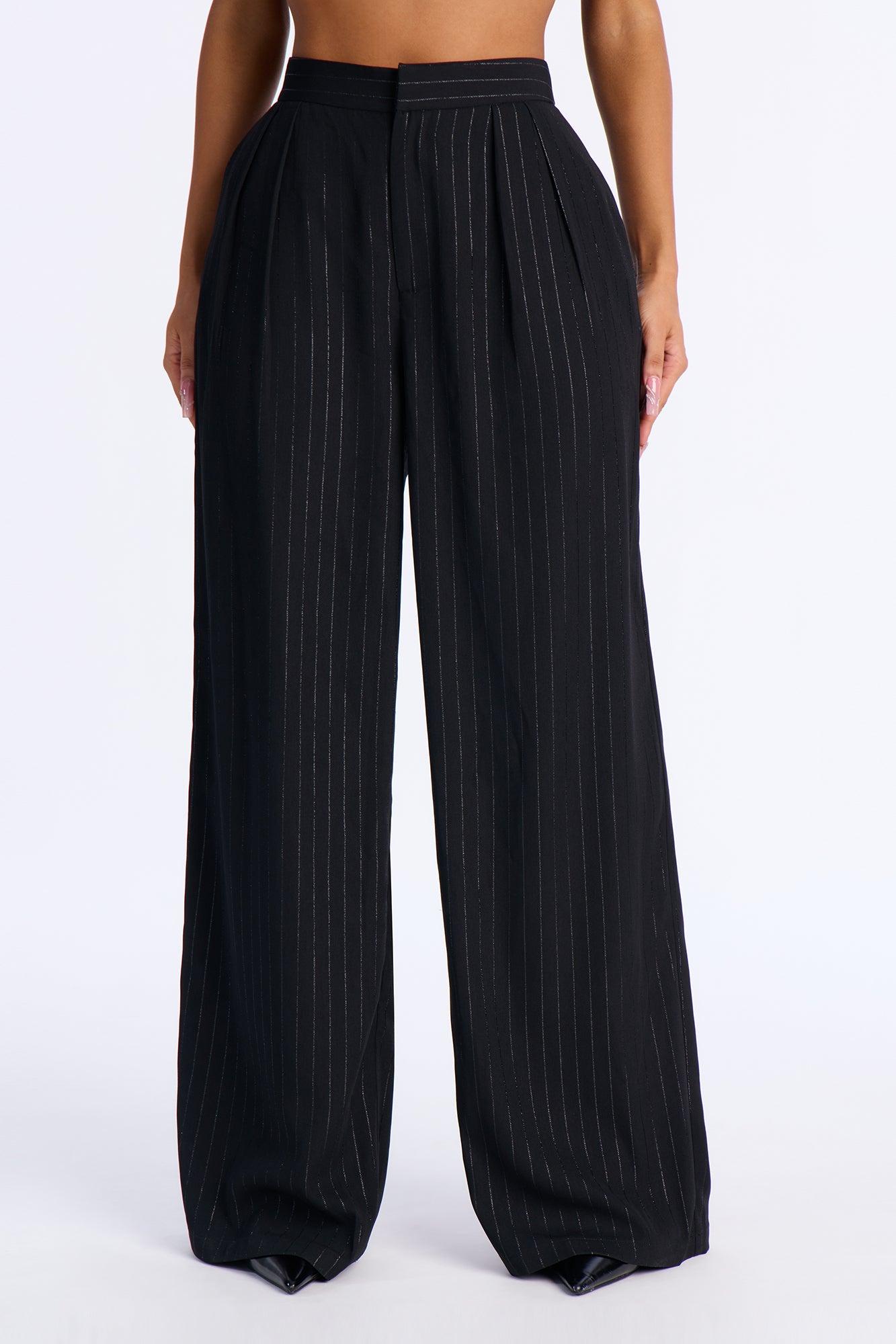 Smooth Criminal Metallic Pinstripe Trousers - Black Female