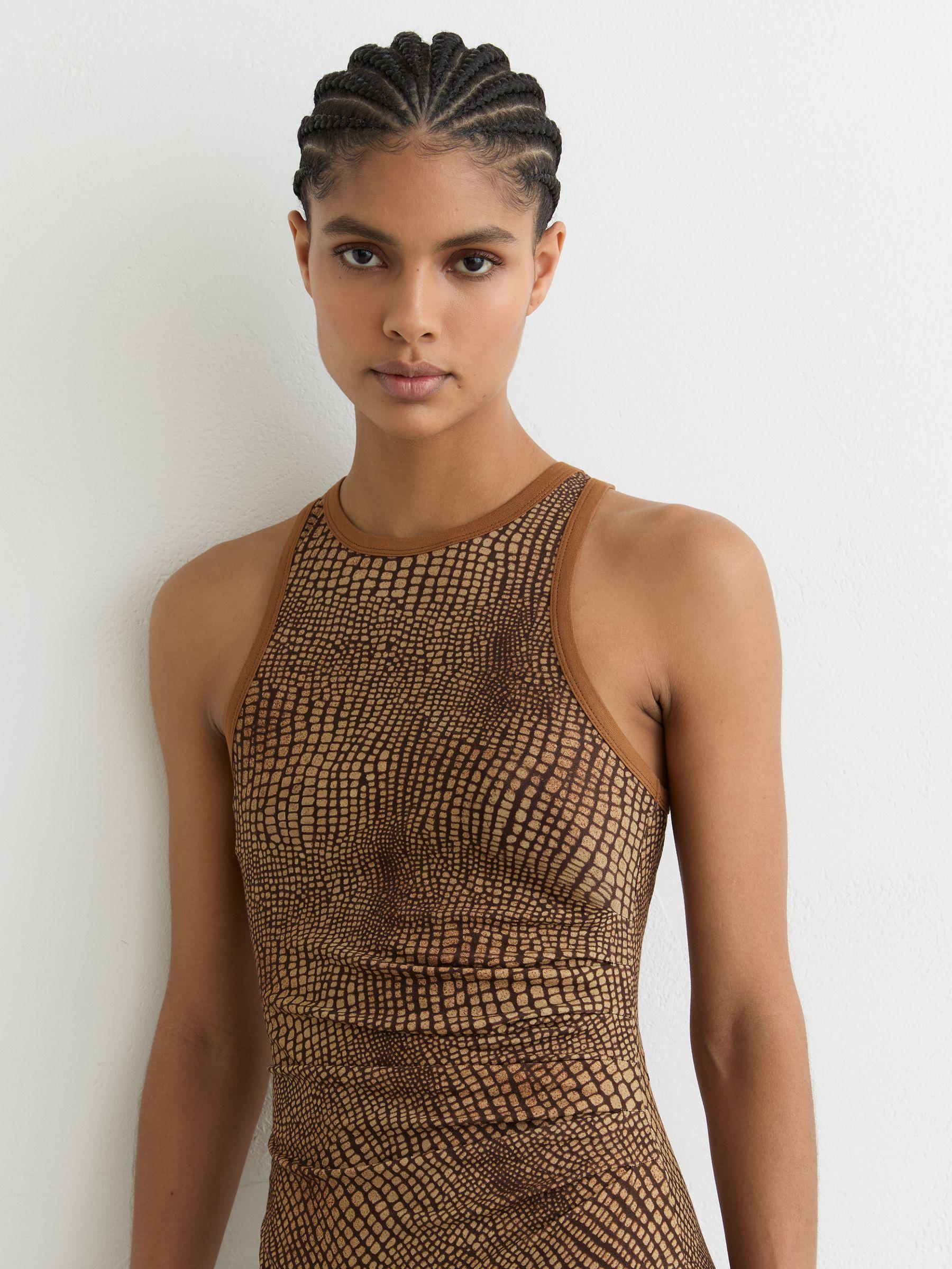 Shop for Reiss Snake-Print Jersey Racer Midi Dress in Brown online at REISS USA