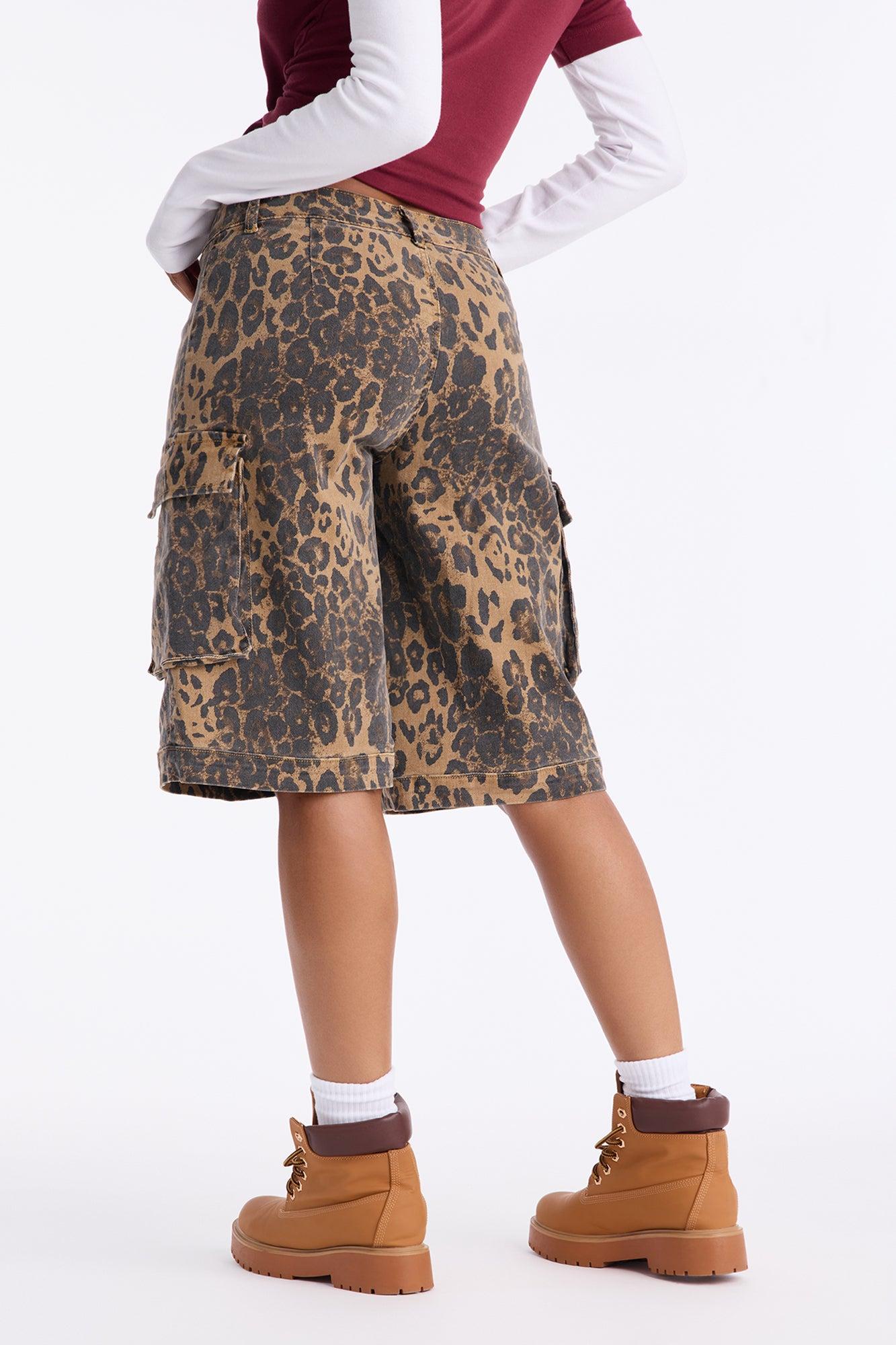 Available In Leopard. Bermuda Short Button and Zipper Closure Low Rise Cargo & Utility Pockets Animal Leopard Print Twill Rigid Non Stretch 8.5" Inseam Disclaimer: Due To The Specialized Wash Process, Each Garment Is Unique. Shell: 98% Cotton 2% Spandex Imported