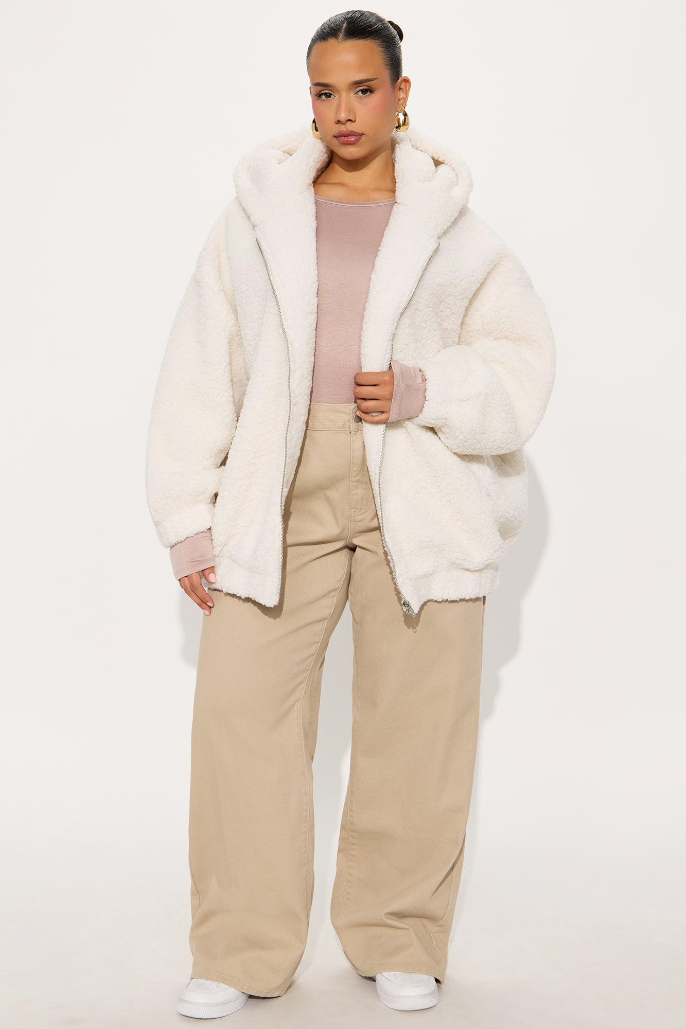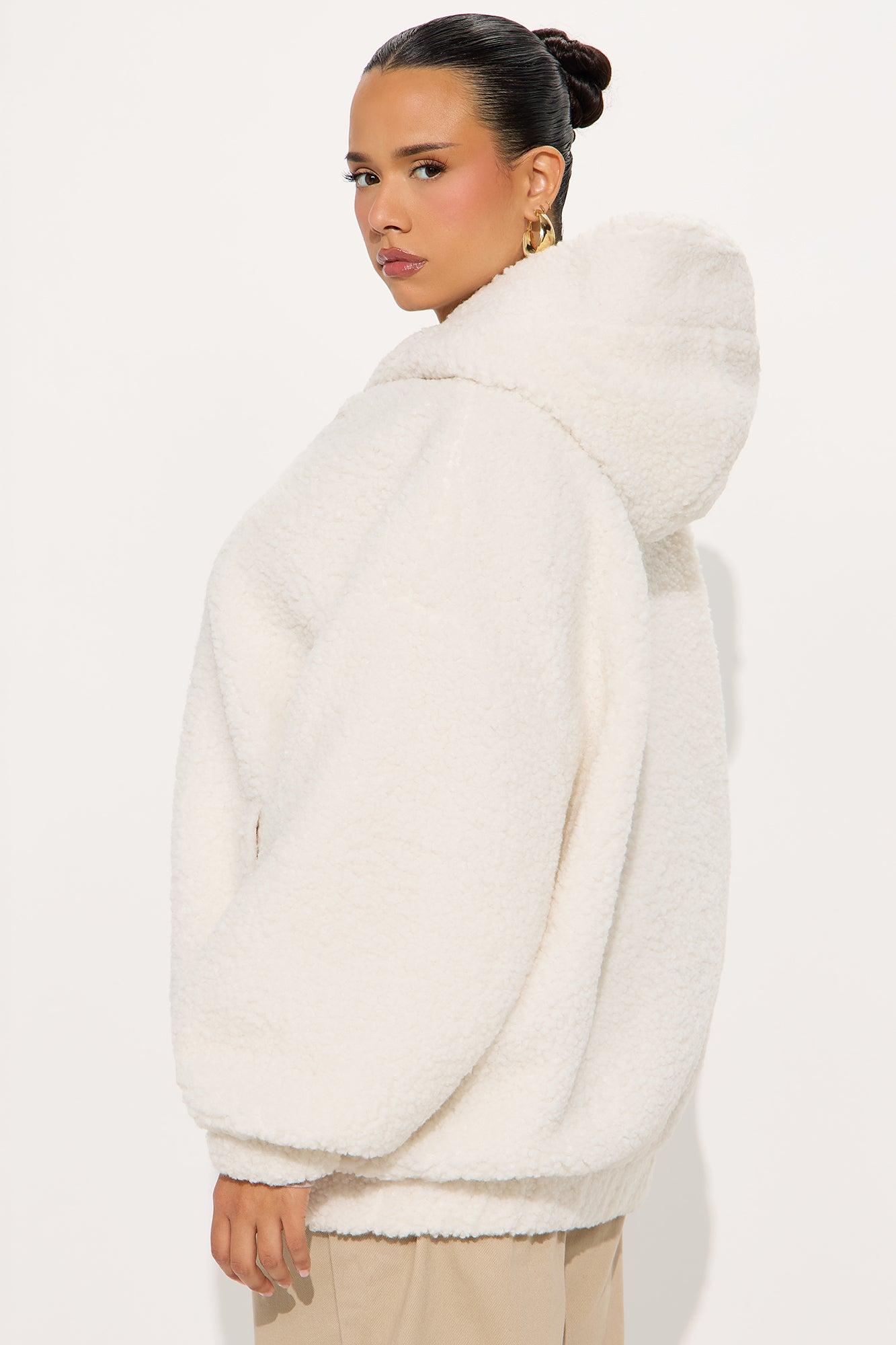 Snuggle Up Hooded Sherpa Coat - Cream Female