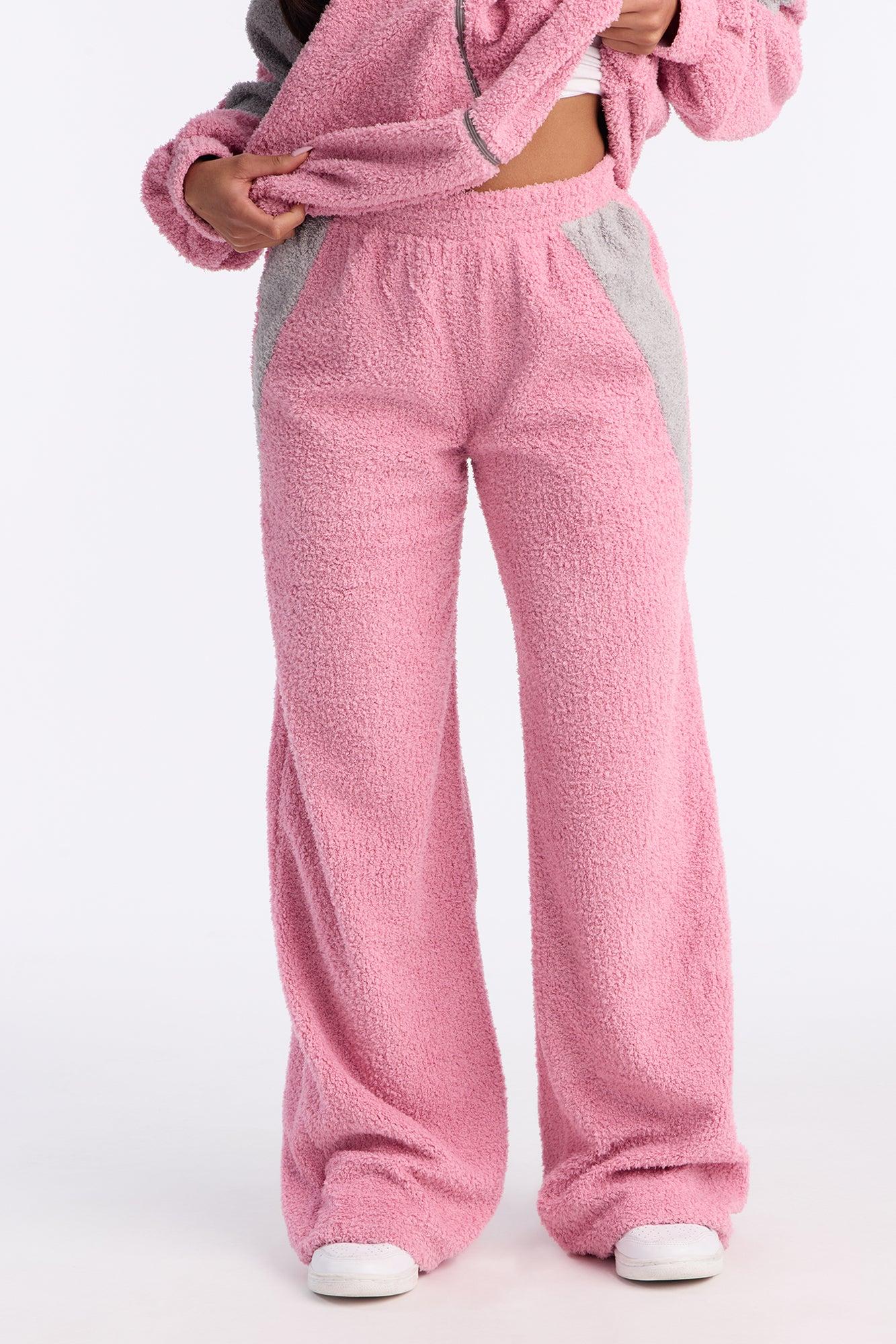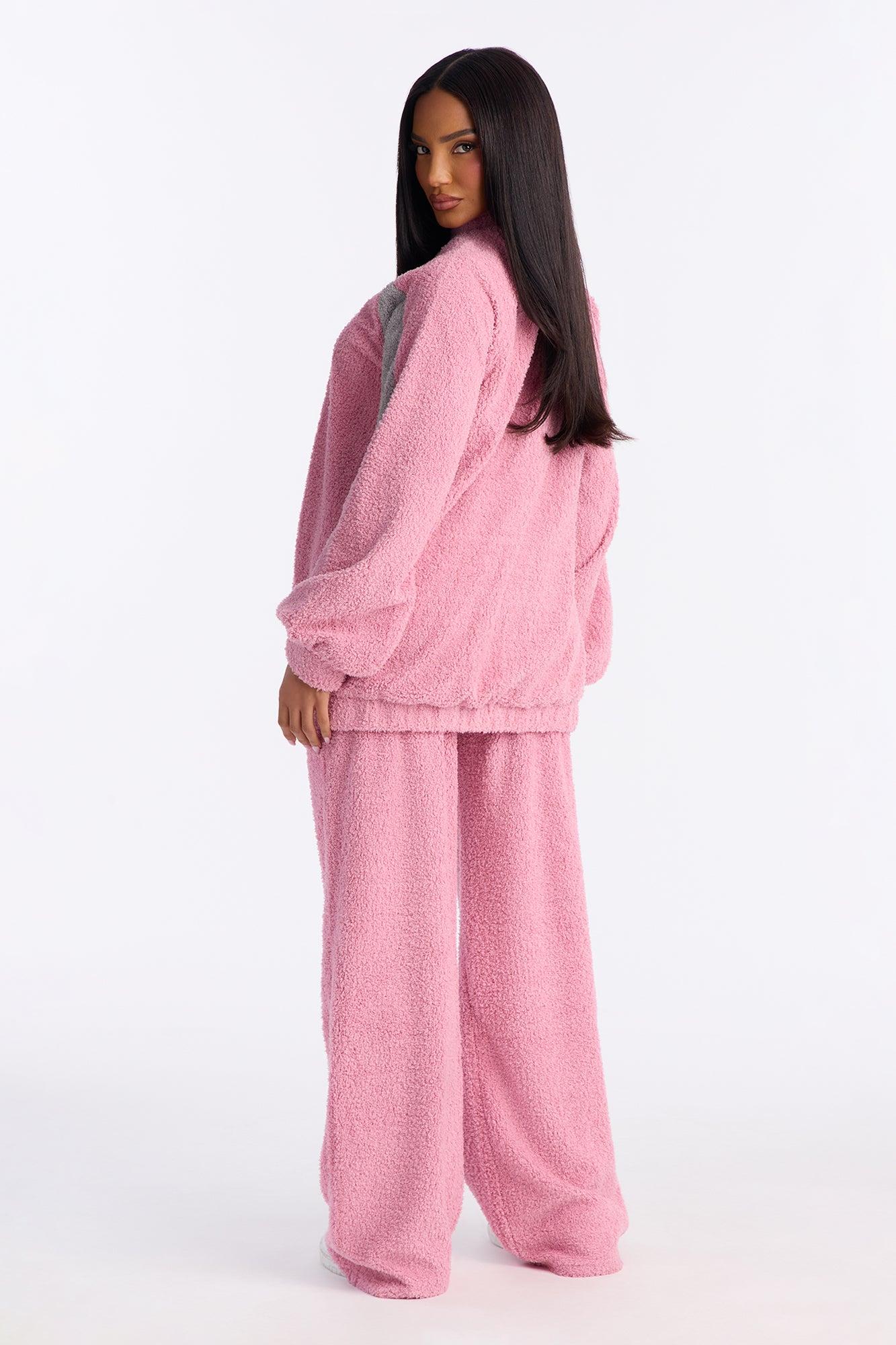 Available In Black And Pink. 2 Piece Ensemble Zip Up And Wide Leg Pant Set Stretch 33" Inseam Elastic Waistband Self : 100% Polyester Imported