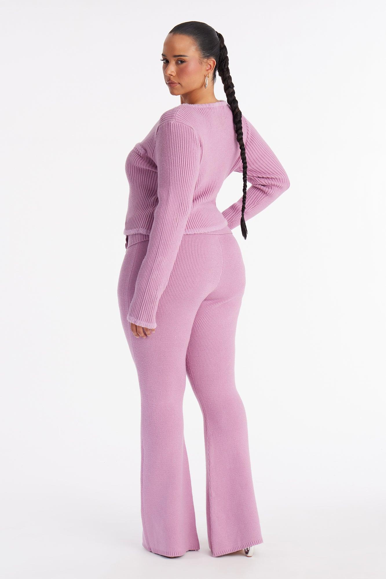 Available In Cream And Lavender. 2 Piece Ensemble Long Sleeve Cardigan And Flare Leg Pant Set Stretch Button Front Top Closure Flare Leg Waistband Foldover 34" Inseam Top Self: 50% Rayon 30% Polyester 20% Nylon Bottom Self: 50% Rayon 30% Polyester 20% Nylon Imported