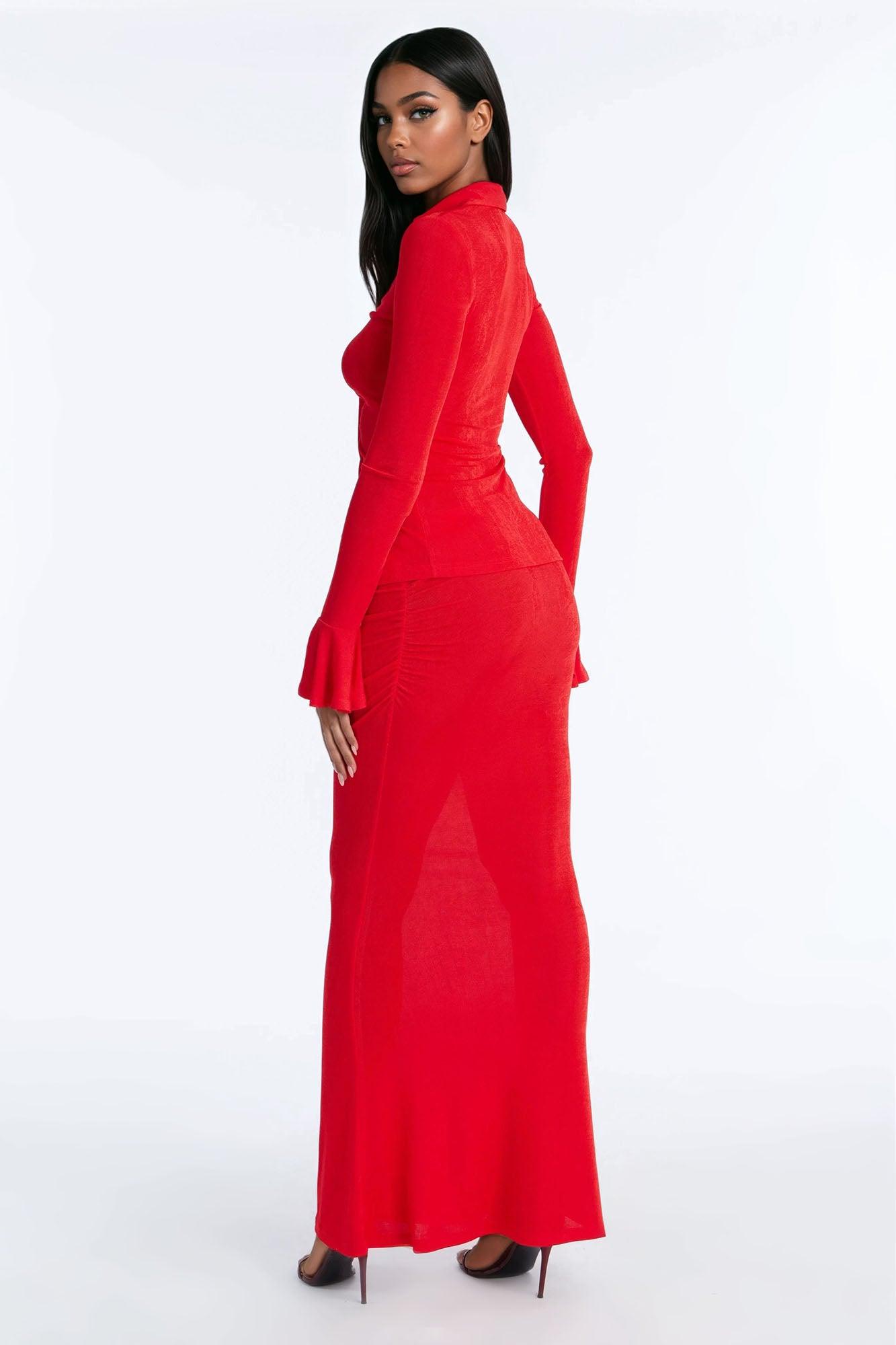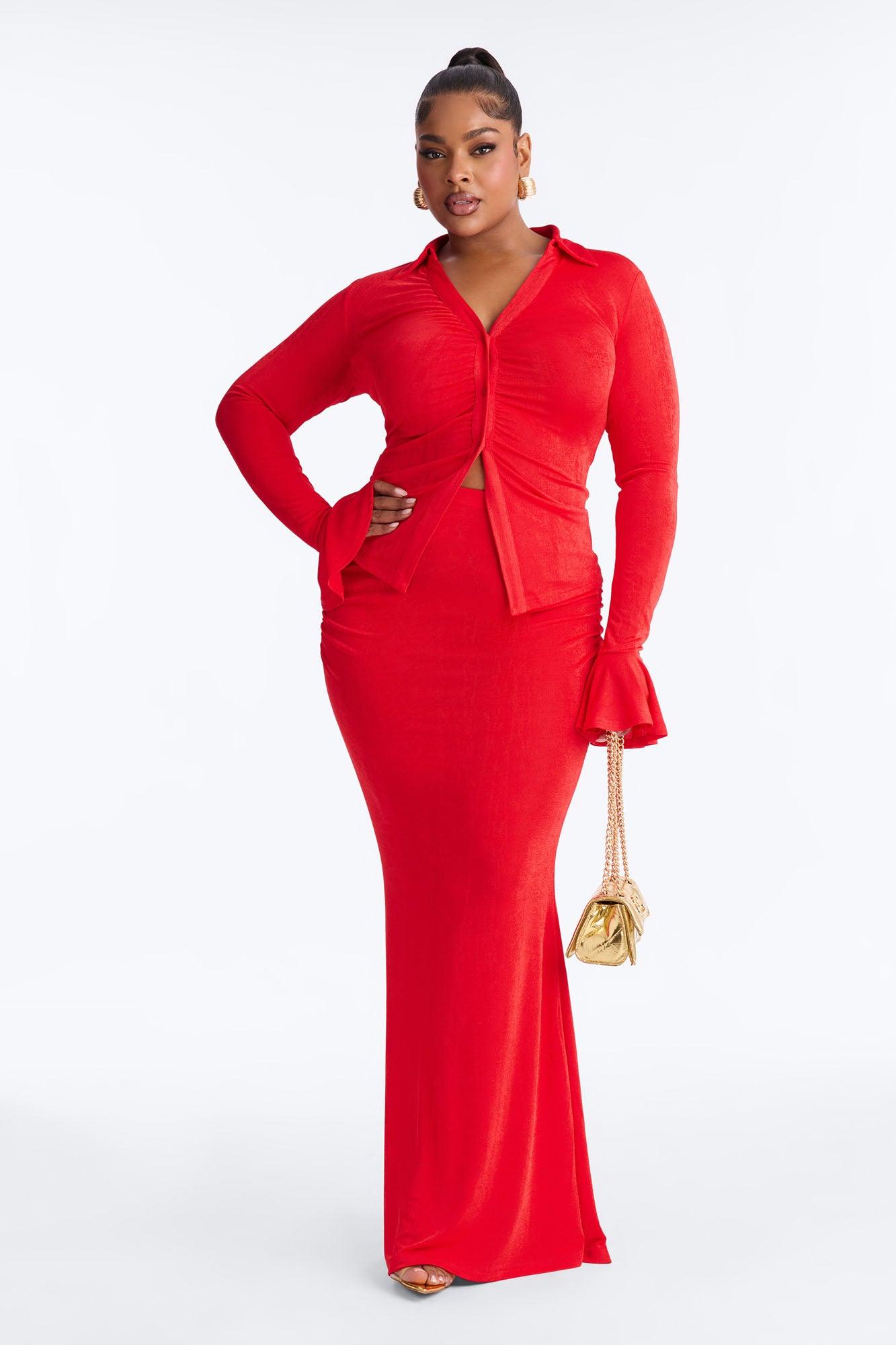 So Sweet Ruched Maxi Skirt Set - Red Female
