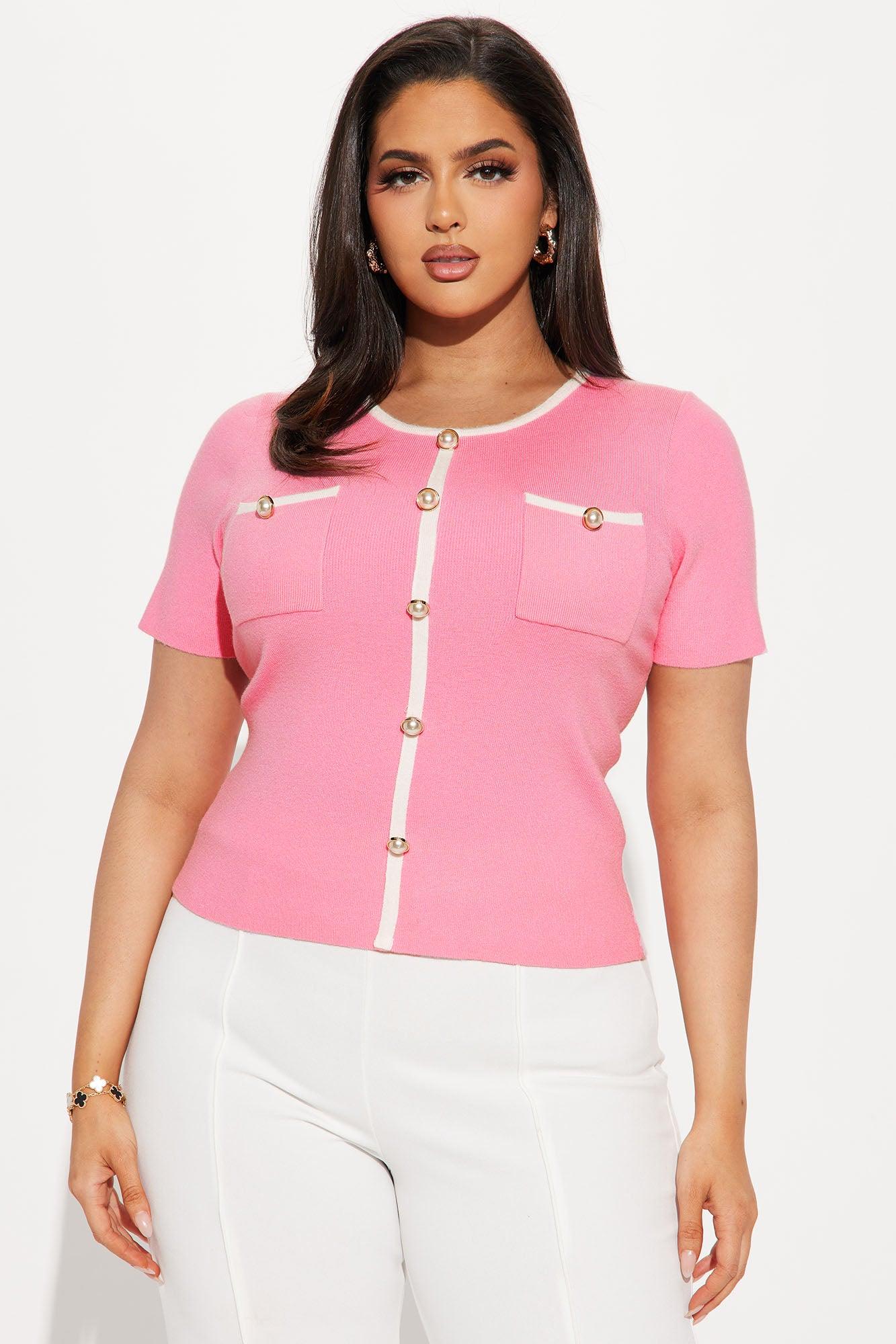 Sofia Short Sleeve Sweater Top - Pink/combo