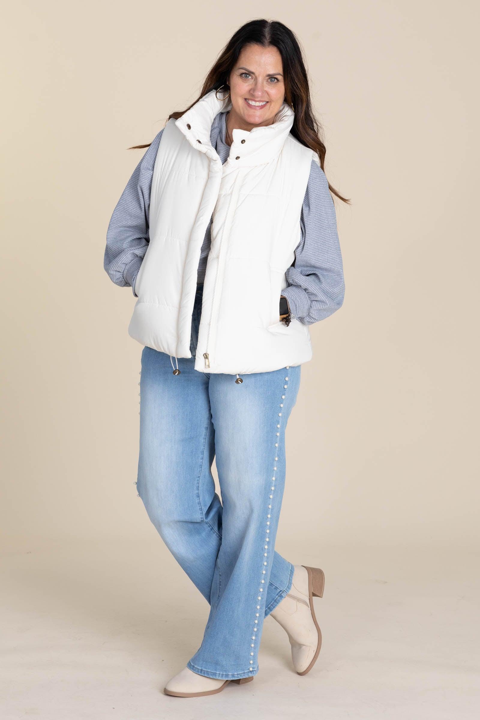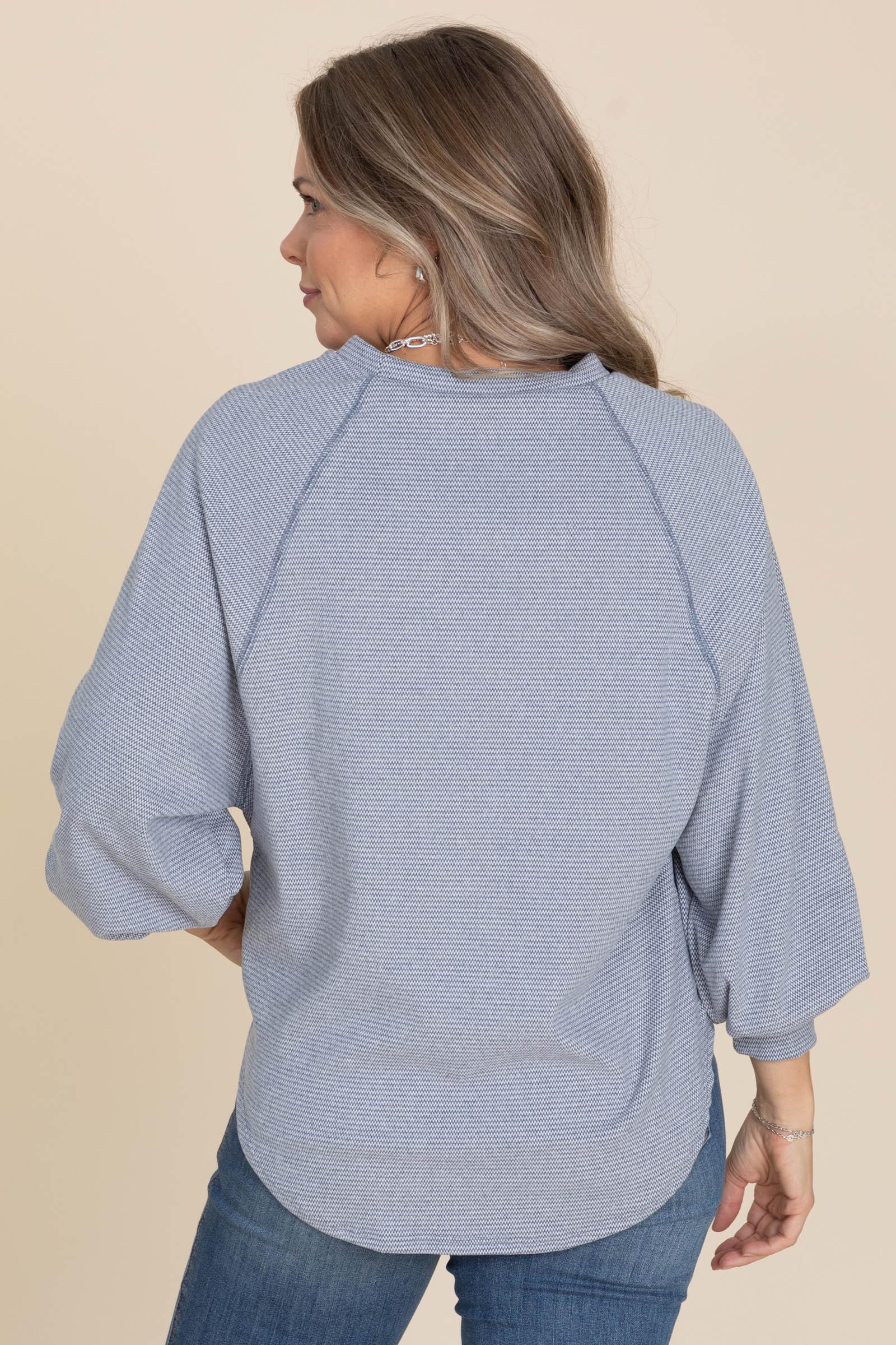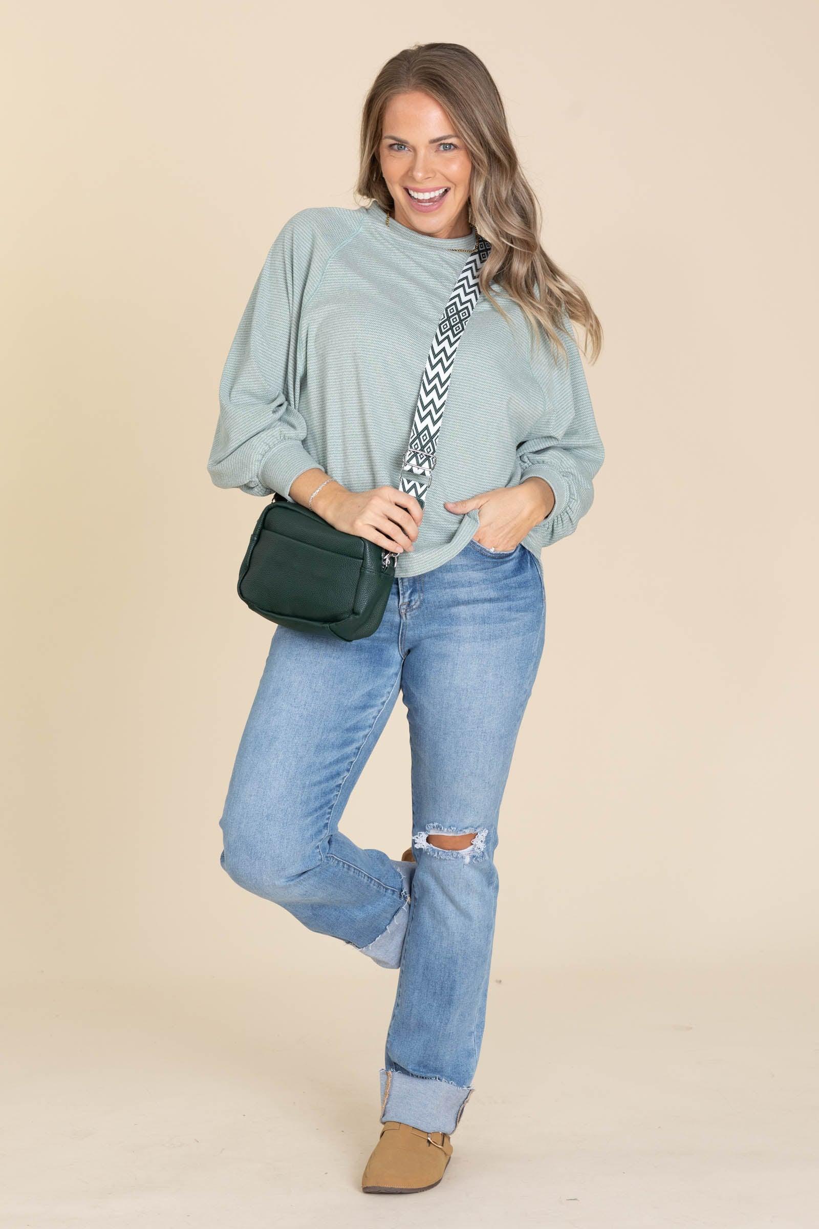 Product Details Colors: Green, Off White/ Dusty Navy, Off White/ Camel, Off White Print: Mini Wave Neckline: Round Sleeve: Long Sleeve Hemline: Round Brand: Filly Flair Material and Care 93% Polyester 7% Spandex Machine Wash Cold Hang/ Line Dry Made In The USA Size and Fit Small: Bust 42" Waist 42" Length 25"/27.5" Medium: Bust 44" Waist 44" Length 25.5"/28" Large: Bust 46" Waist 46" Length 26"/28.5" X Large: Bust 48" Waist 48" Length 26.5"/29" 2X Large: Bust 50" Waist 50" Length 27.5"/30" 3X Large: Bust 52" Waist 52" Length 28"/30.5" Erica is 5’7” and wearing her true size small Renae is 5’2 and wearing her true size small Kristen is 5’2 and wearing her true size X Large