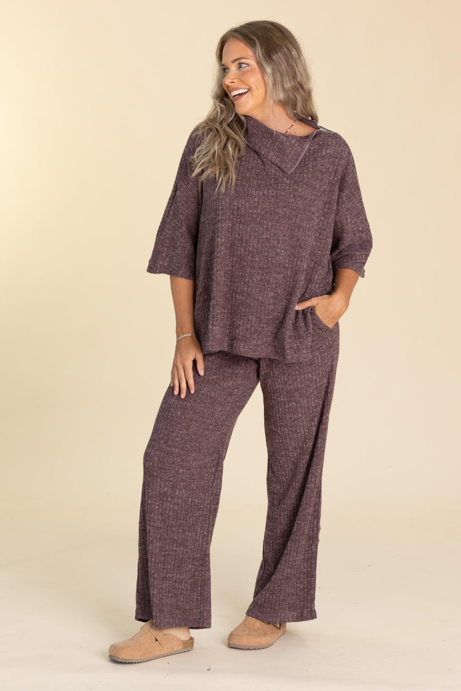 Product Details Color: Heathered Black/ Heathered Chocolate/ Heathered Olive/ Heathered Plum Print: Heathered Neckline: Mock Neck With Side Zipper Sleeves: Short Sleeve Hemline: Straight Brand: Dear Scarlett 2 Piece Set Material and Care 80% Polyester 17% Rayon 3% Spandex Hand Wash Cold Line Dry Size and Fit Top Small: Bust 78" Waist 72" Length 26" Medium: Bust 80" Waist 74" Length 26.5" Large: Bust 82" Waist 76" Length 27" X Large: Bust 84" Waist 78" Length 27.5" 2X Large: Bust 86" Waist 80" Length 29" 3X Large: Bust 88" Waist 82" Length 29.5" Bottom Small: Waist 26" Rise 12" Inseam 29.5" Medium: Waist 28" Rise 12..5" Inseam 29.5" Large: Waist 30" Rise 12.5" Inseam 29.5" X Large: Waist 32" Rise 13" Inseam 29.5" 2X Large: Waist 34" Rise 14" Inseam 30" 3X Large: Waist 36" Rise 14.5" Inseam 30" Erica is 5’7” and wearing her true size small