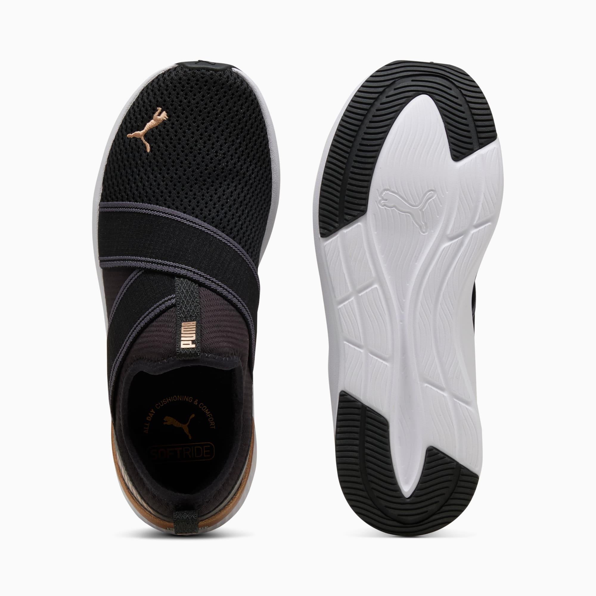 Effortless Style Meets Unbeatable Comfort With These Slip-On Shoes. Featuring Softride Cushioning, Softfoam+ Sockliner, And Zoned Rubber Traction, These Shoes Are Perfect For Your Dynamic Lifestyle. Premium Details And An Asymmetrical Gore Band Add A Sophisticated Touch To Every Step. Features & Benefits Softfoam+: Step-In Comfort Sockliner Designed To Provide Soft Cushioning Thanks To Its Extra Thick Heelthe Upper Of The Shoes Is Made With At Least 30% Recycled Materials. Details Regular Widthtextile Upperslip Oncushioning Level: Mediumpuma Branding Details | | PUMA SOFTRIDE Harli Slip-On Running Shoes Women in Black, Size 7
