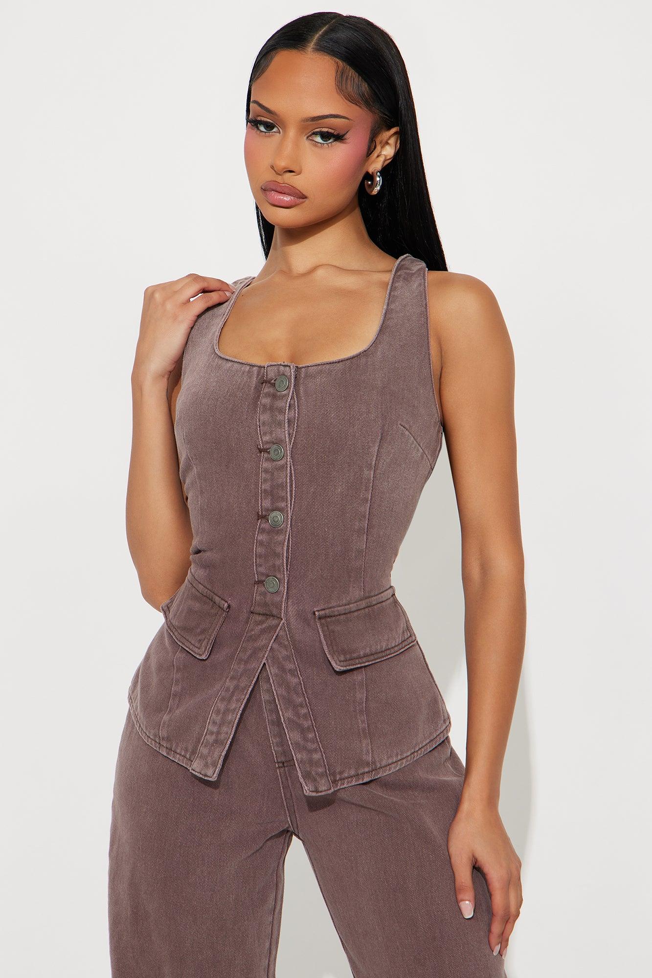 Solana Washed Denim Wide Leg Jumpsuit - Chocolate Female