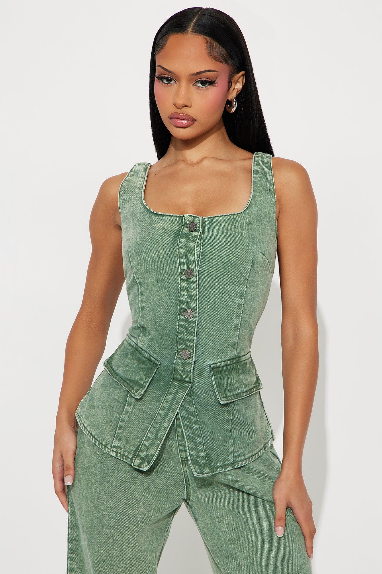 Solana Washed Denim Wide Leg Jumpsuit - Olive Female