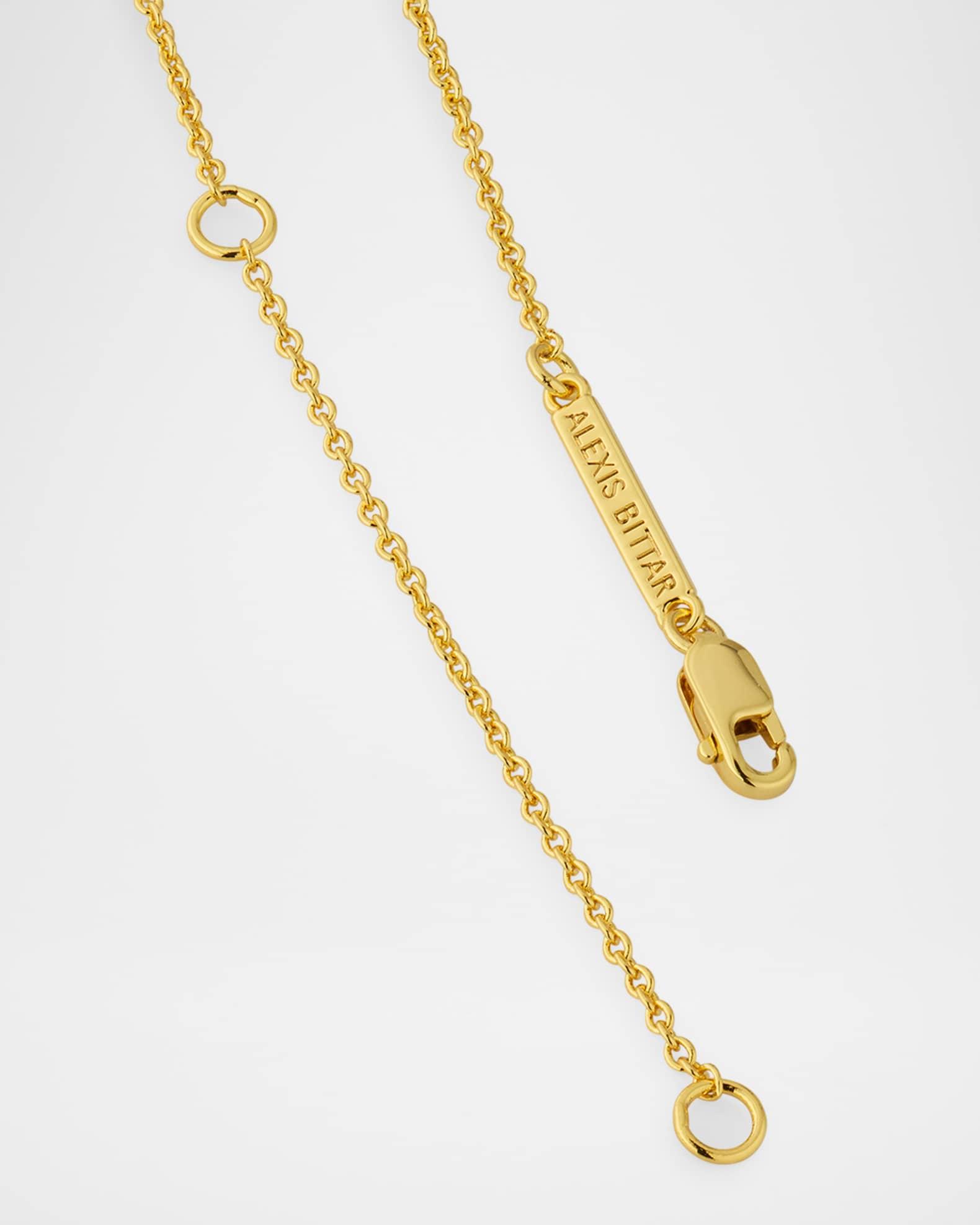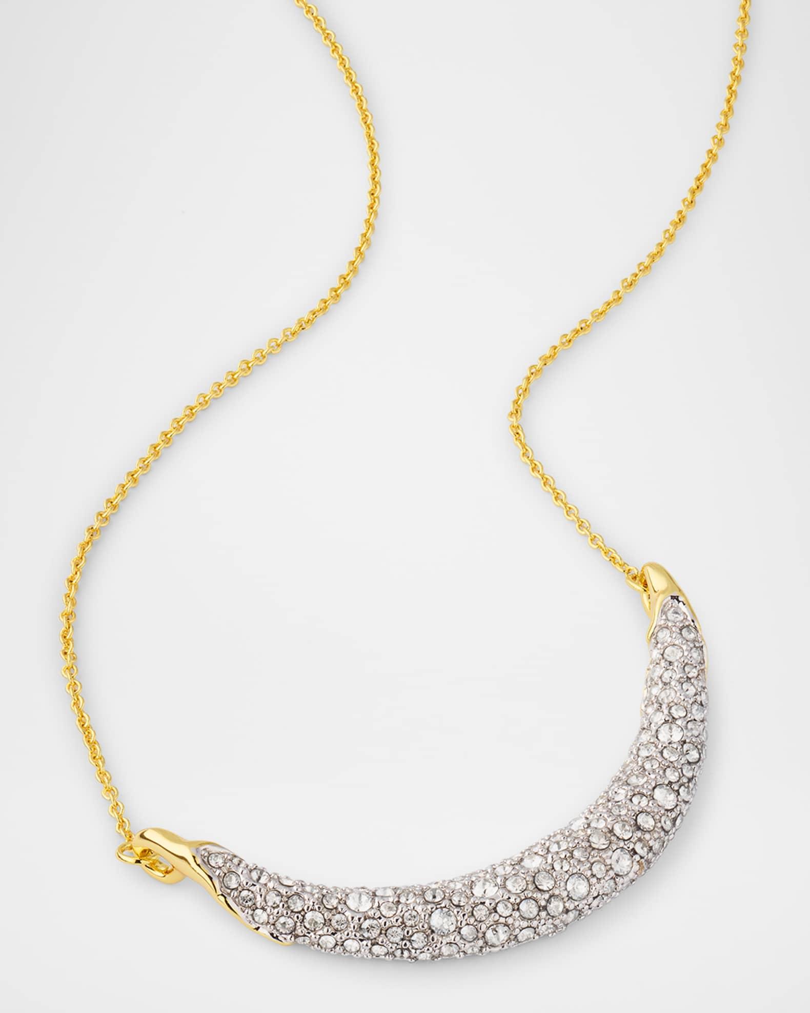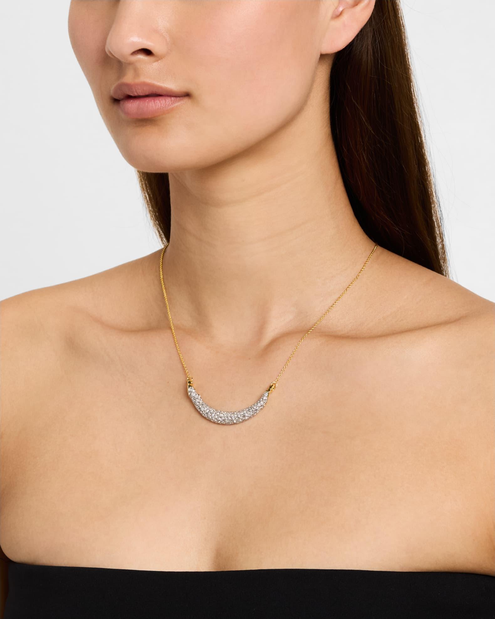 Alexis Bittar pendant necklace with a curved bar Approx. 16" length; 2" extender 14-karat gold-plated brass Pavé-set glass crystals Adjustable length Imported To clean your jewelry, wipe with a soft untreated cloth and store separately to preserve colors and avoid scratches.