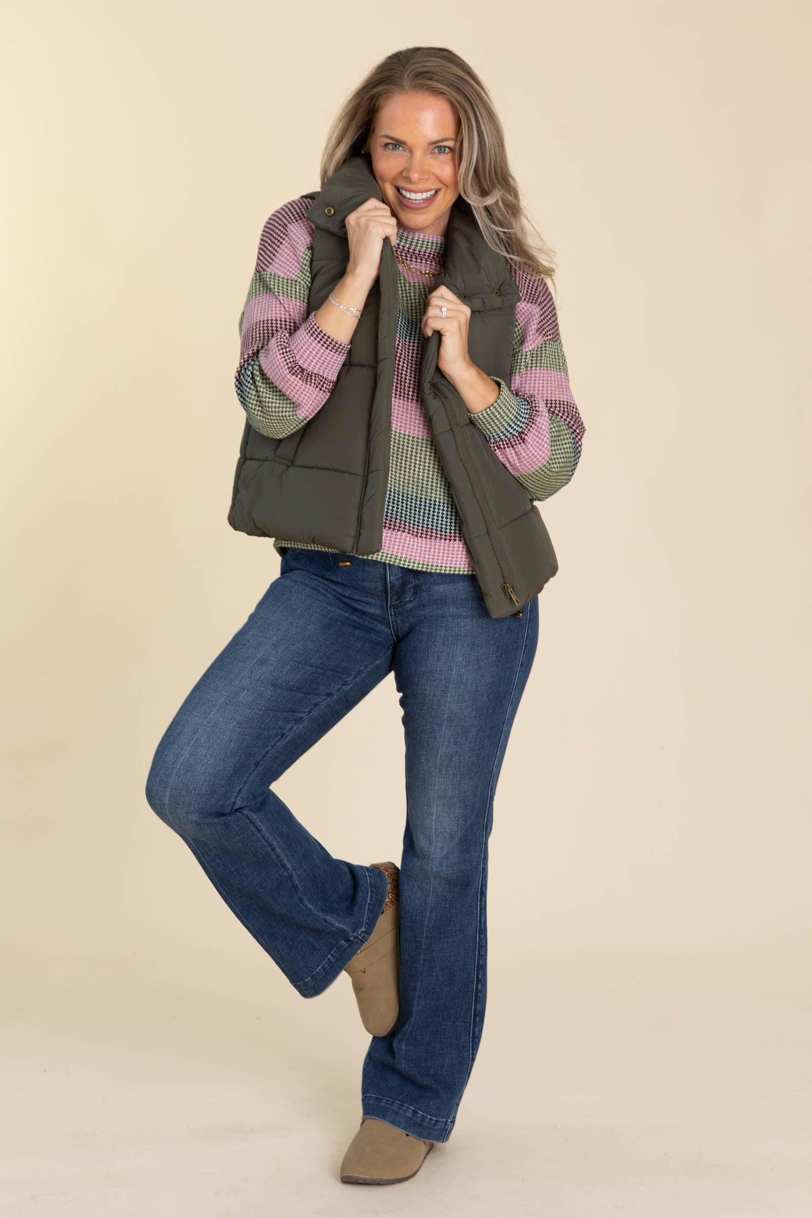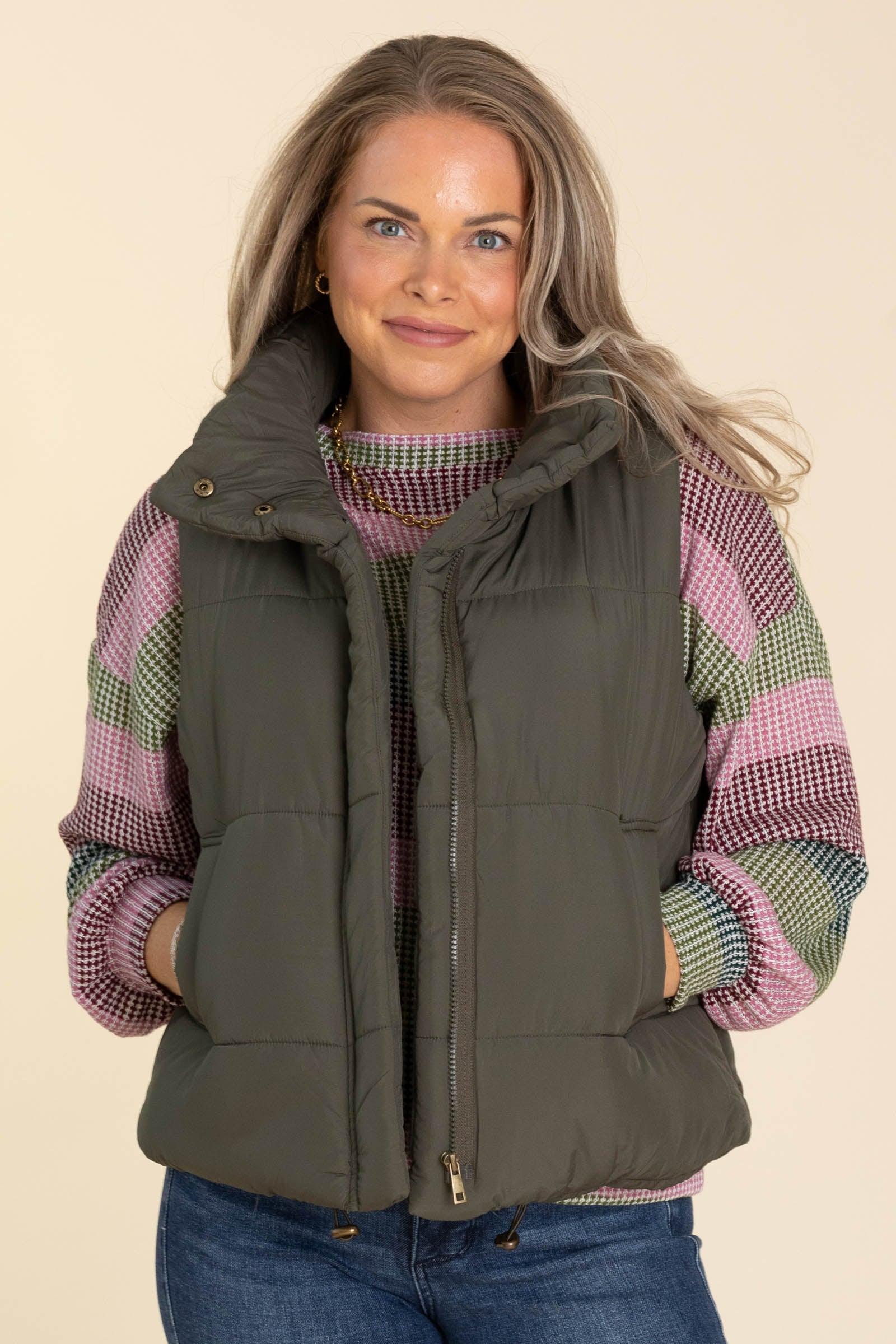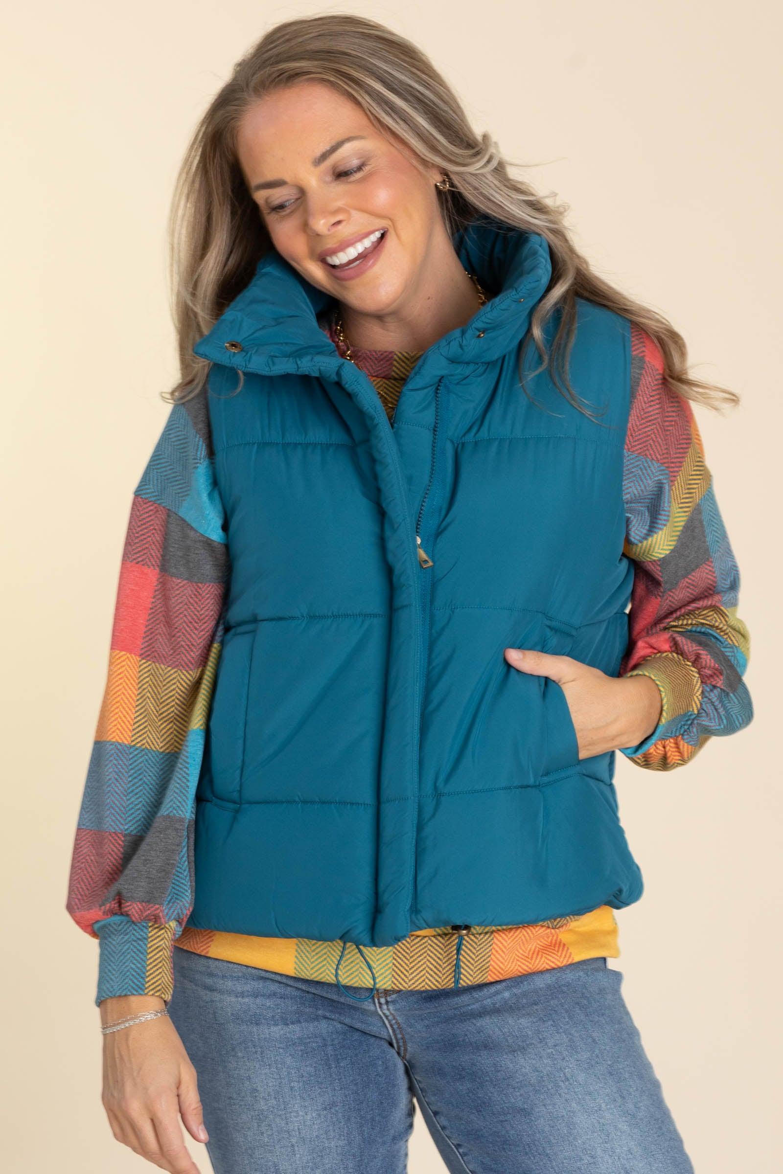Product Details Colors: Black/ Brown/ Cream/ Dark Olive/ Hunter Green/ Navy/ Red/ Teal Print: Solid Neckline: Zip Up With 2 Top Buttons Sleeve: Sleeveless Hemline: Straight Brand: Zenana Material and Care Self: 100% Polyester Lining: 100% Polyester Hand Wash Cold Hang/Line Dry Size and Fit Small: Bust 42" Waist 44" Length 22" Medium: Bust 44" Waist 46" Length 22.5" Large: Bust 46" Waist 48" Length 23" Erica is 5’7” and wearing her true size small