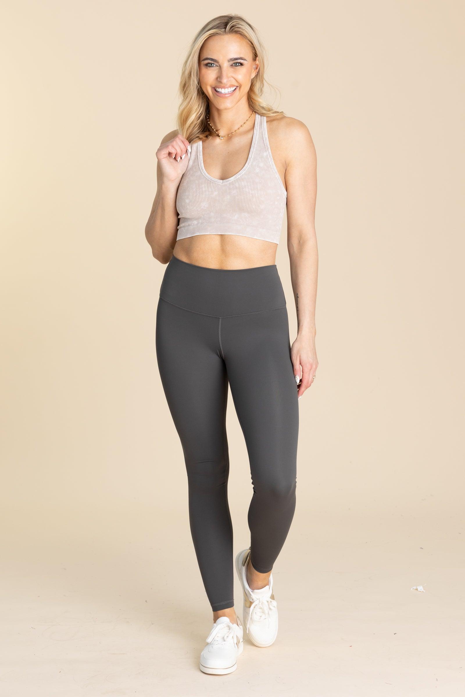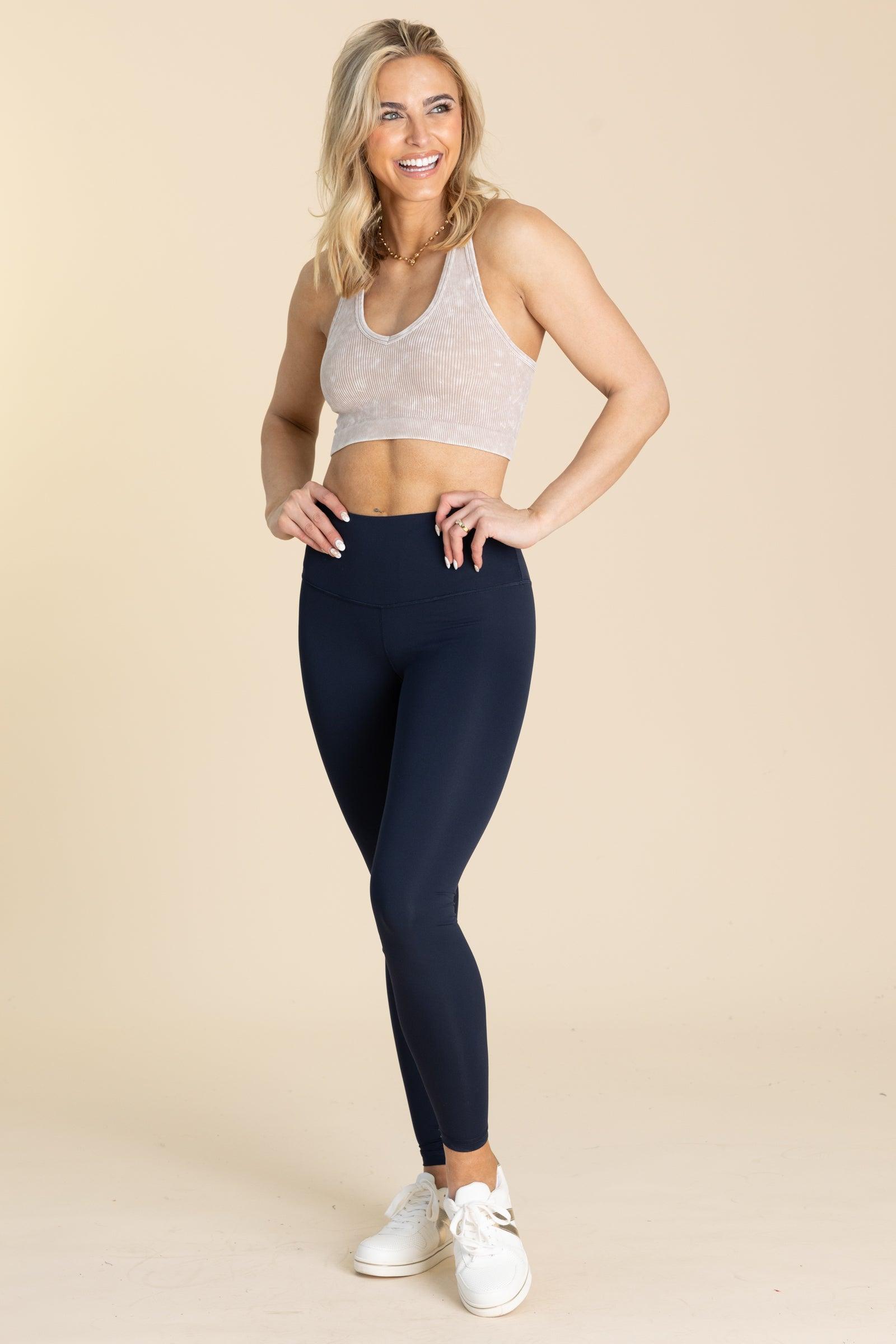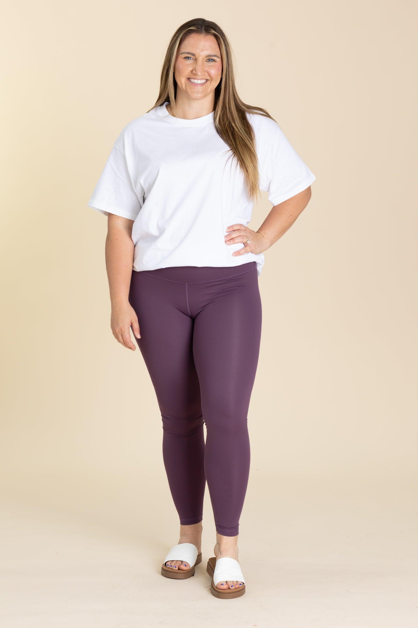 Product Details Color/Wash: Black/ Charcoal/ Grape Thistle/ Grey Sage/ Navy/ Waterdrop Rise: High Rise Style: Leggings Brand: Fit USA Material and Care 81% Nylon 19% Lycra Hand Wash Cold Tumble Dry Low Size and Fit Small: Waist 22" Rise: 10" Inseam: 28.5" Medium: Waist 24" Rise: 10" Inseam: 28.5" Large: Waist 26" Rise: 10.5" Inseam: 28.5" X Large: Waist 28" Rise: 11" Inseam: 28.5" Model A is 5’8” and wearing her true size small Model B is 5’8” and wearing her true size large Video Model is 5'8"and wearing size small