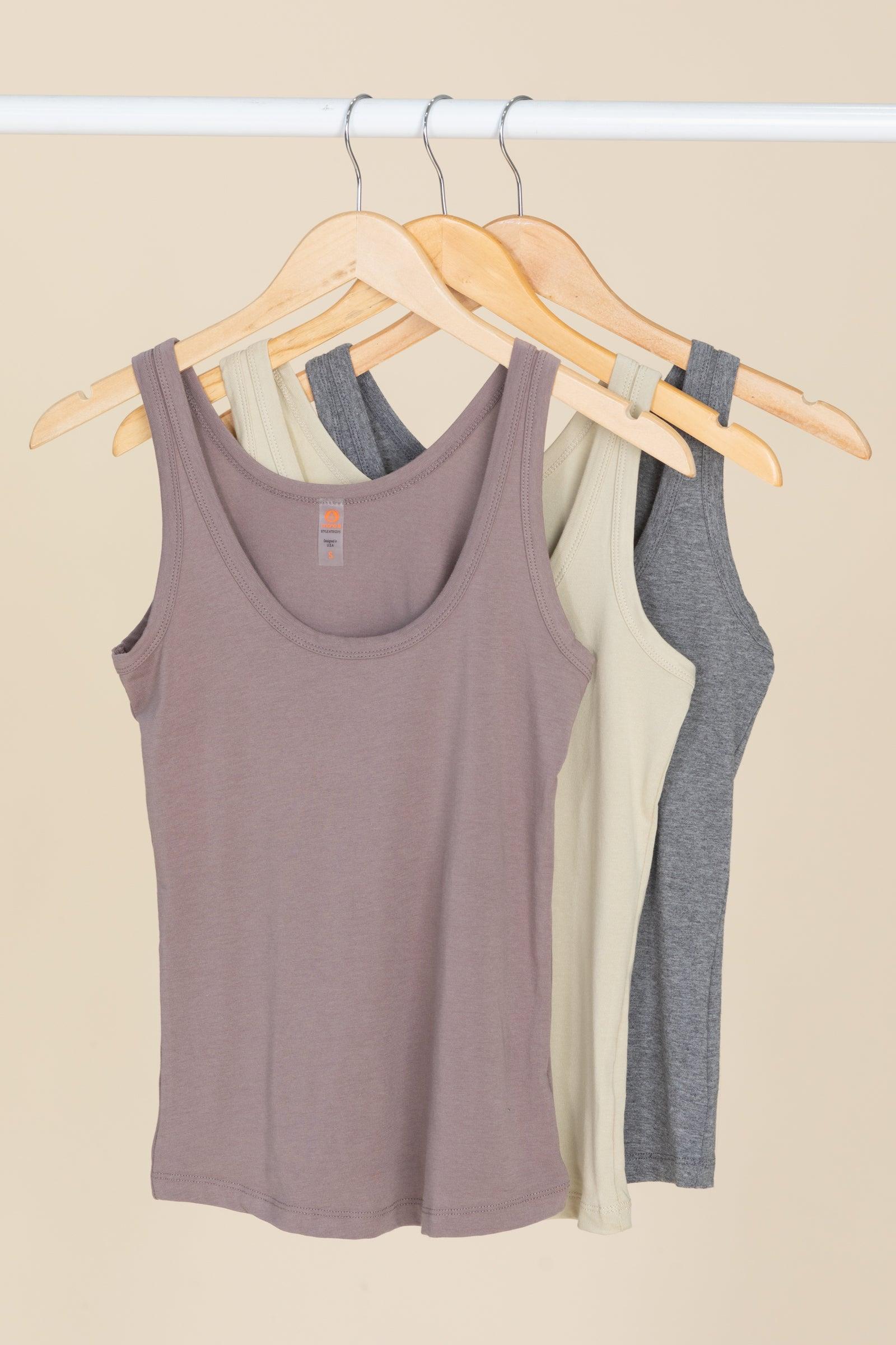 Product Details Colors: Deep Taupe/ Green Khaki/ Heather Grey Print: Solid Neckline: Round Sleeve: Sleeveless Hemline: Straight Brand: Mono B Material and Care 58% Cotton 38% Modal 4% Spandex Machine Wash Cold Tumble Dry Low Size and Fit Small: Bust 28" Waist 24" Length 22" Medium: Bust 30" Waist 26" Length 22.5" Large: Bust 32" Waist 28" Length 23" Erica is 5’7” and wearing her true size small