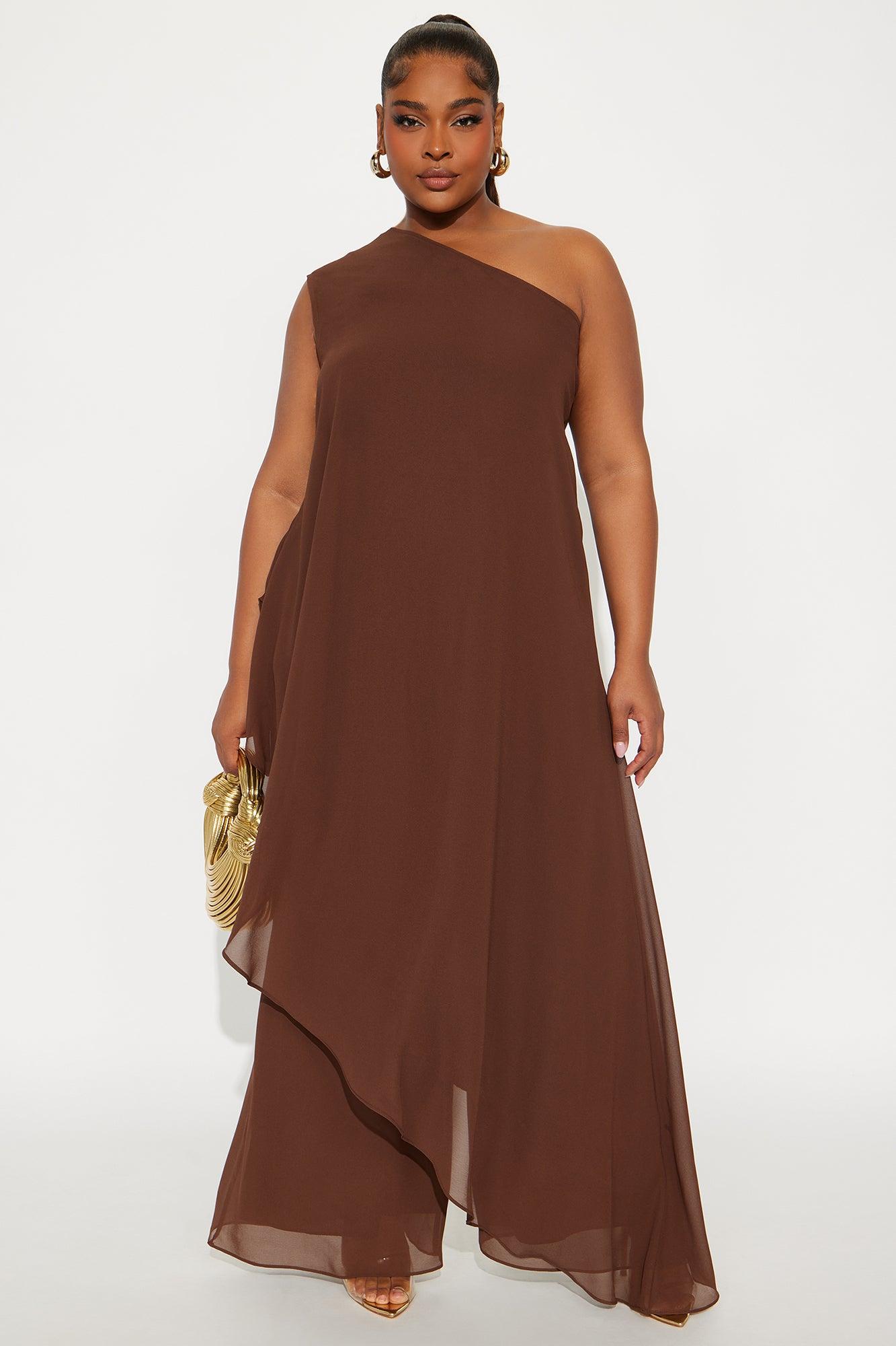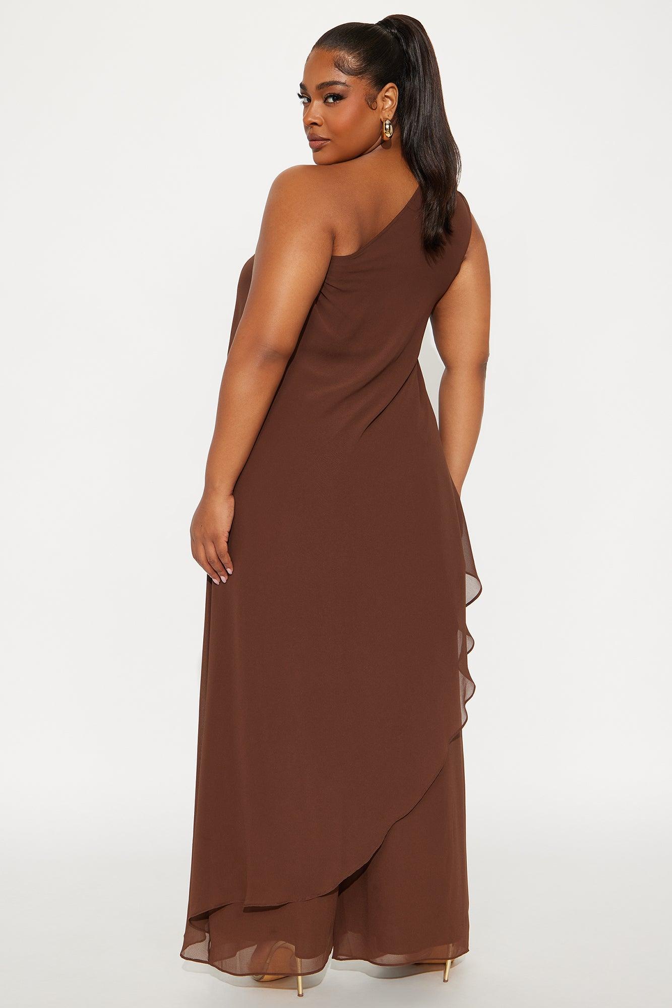 Something Special Draped Asymmetrical Chiffon Pant Set - Chocolate Female
