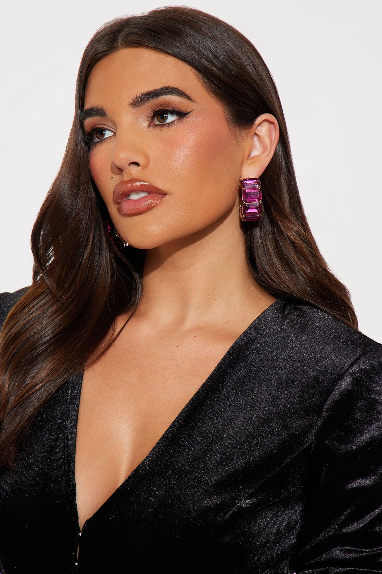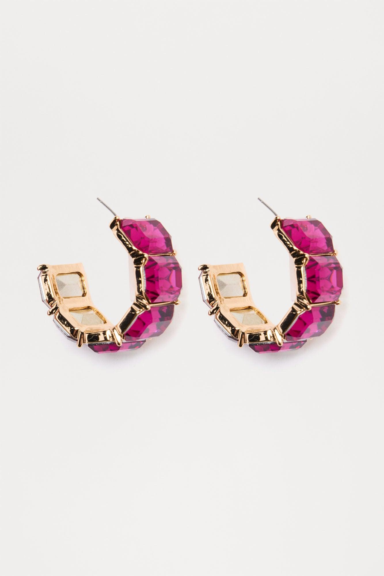 Somewhere To Be Rhinestone Hoop Earrings - Gold/Fuchsia Female