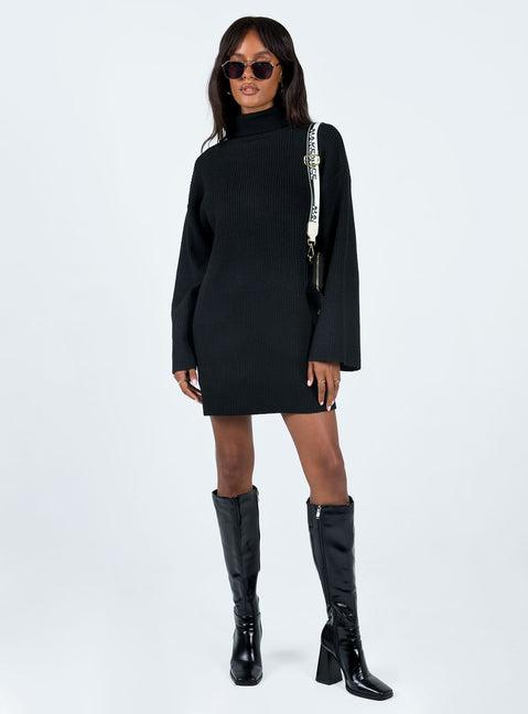 Long sleeve mini dress Relaxed fit Princess Polly Lower Impact 73% reclaimed polyester 24% polyester 3% nylon Length of size XS/S shoulder to hem: 82cm / 32.2in Jenaya is wearing a size XS/S Ribbed knit material Turtle neck Drop shoulder Good stretch Unlined