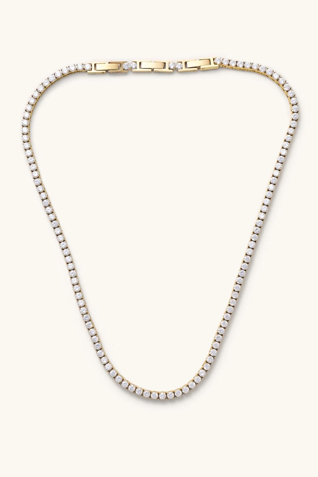 Fall in love with this sparkling Sophie Tennis Necklace that adds elegance to any look. This piece lies perfectly upright along the collarbone and is safe to use because of its waterproof material. A versatile piece of jewelry to add to your collection that can also be paired with other necklaces effortlessly.