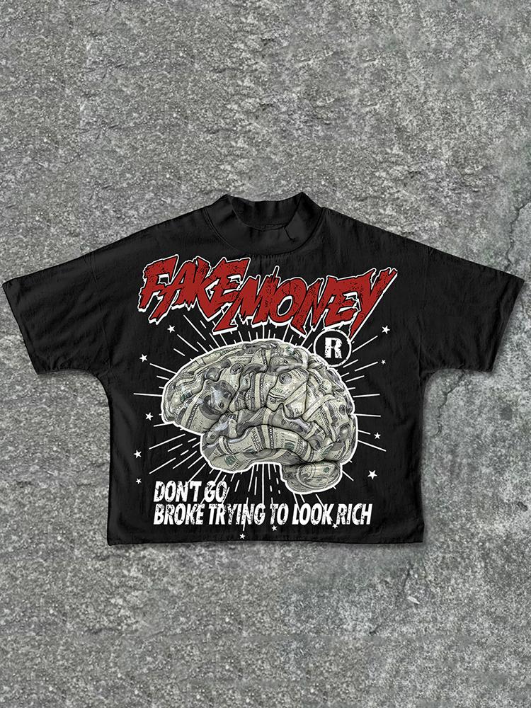 Sopula Don't Go Broke Trying To Look Rich Graphic Print Cotton Cropped T-Shirts