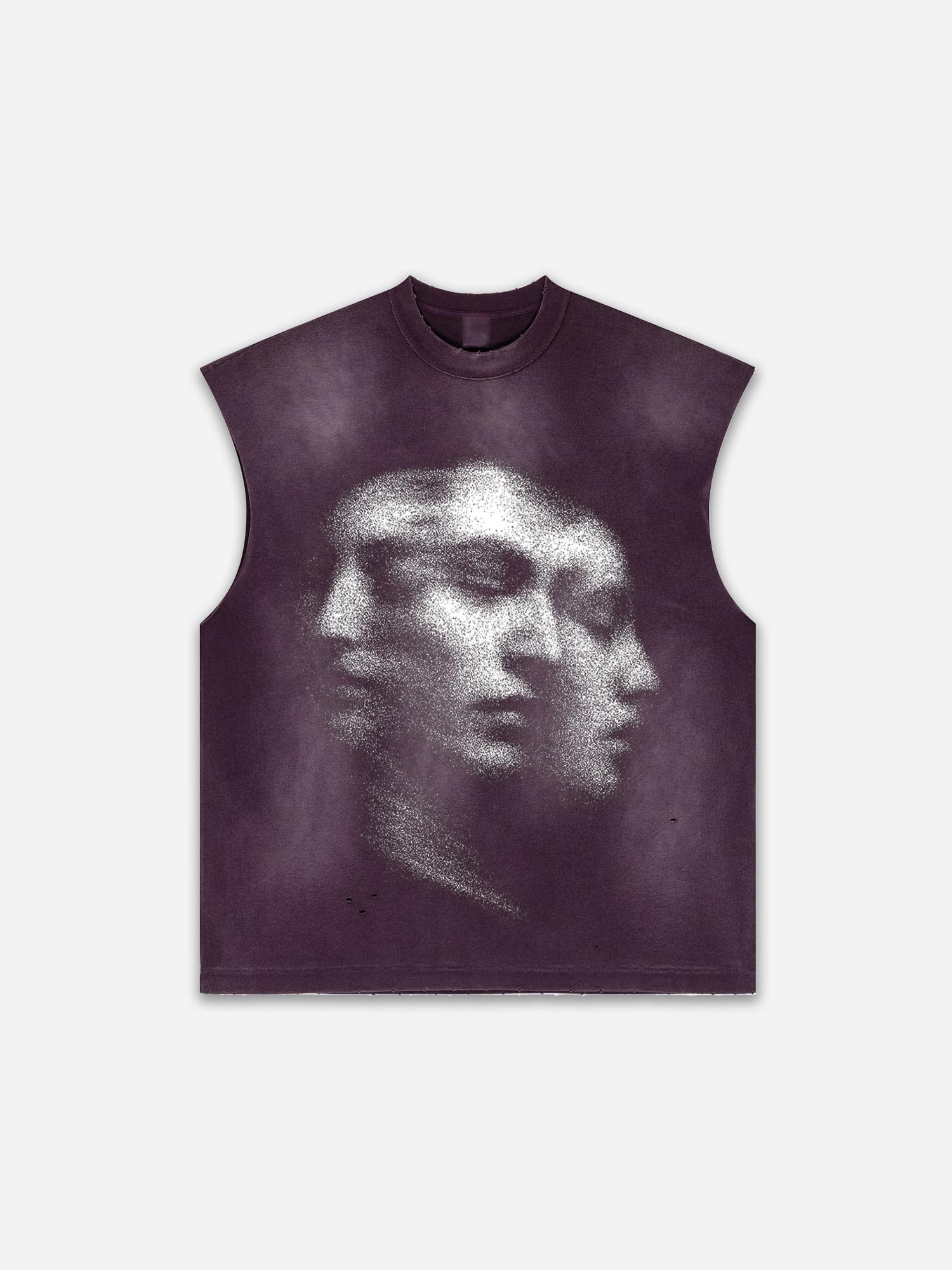 Sopula Men's Abstract Portrait Print Distressed Tank Tops Sleeveless Shirts