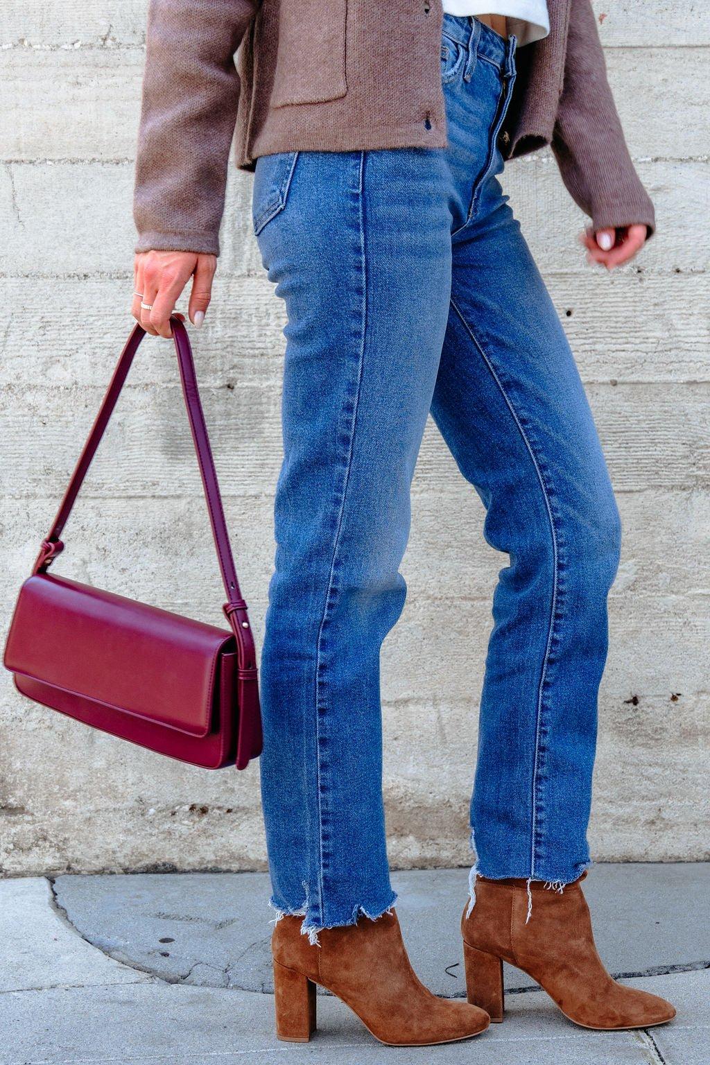 Chic and versatile, this shoulder bag is crafted from rich burgundy vegan leather with gold hardware accents. It features an adjustable strap for a perfect fit, a secure snap button closure, and a fabric-lined interior with a zip pocket to keep your essentials organized. Stylish enough for everyday use and special occasions alike.