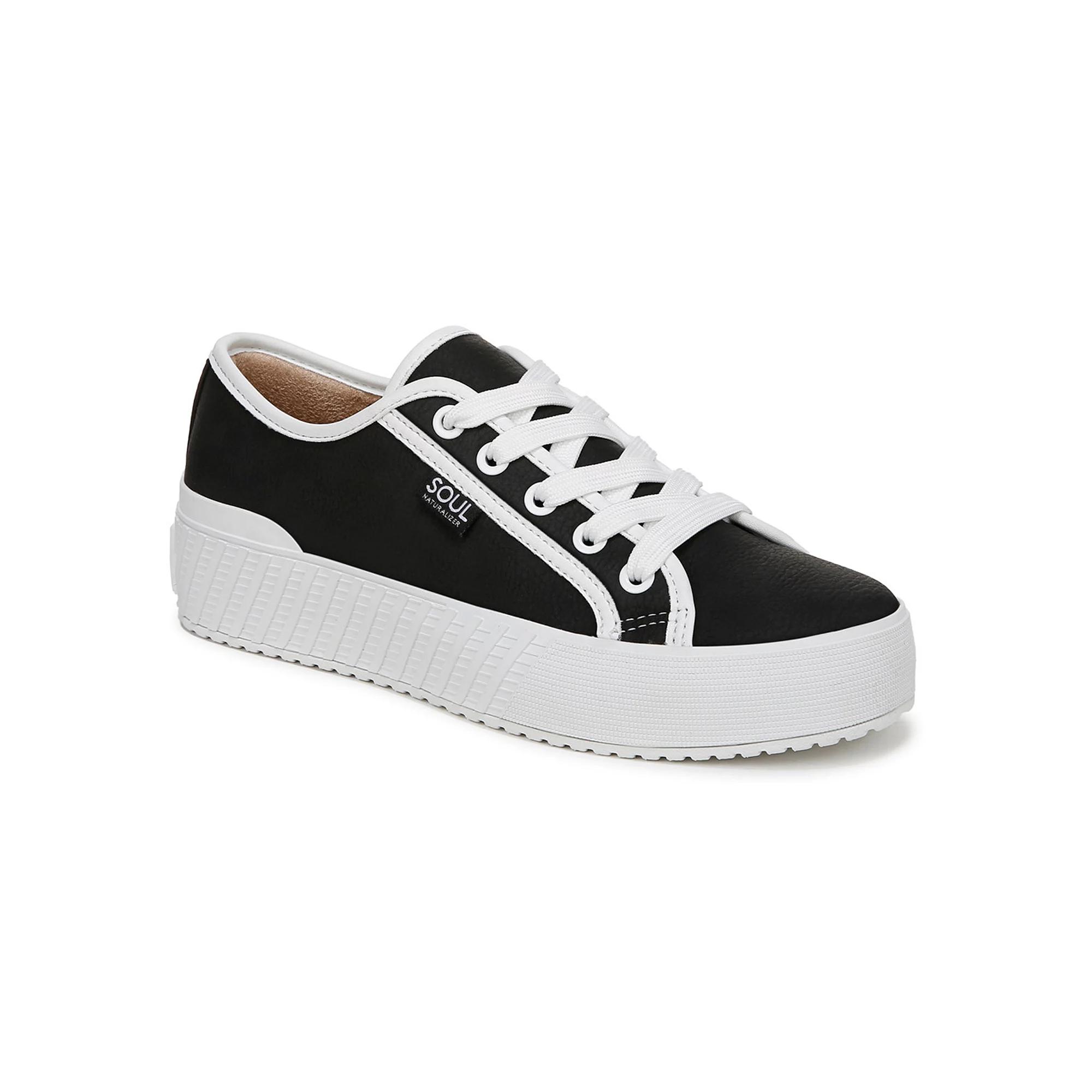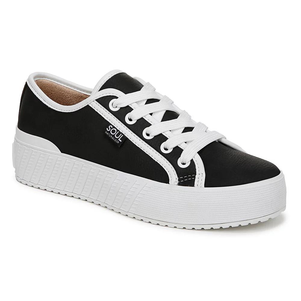 Bashes, boarding, brunches – the Iliana platform sneaker from SOUL Naturalizer is along for the ride. Click this FOOTWEAR GUIDE to find the perfect fit and more! - https://www.kohls.com/feature/shoesizeguide.jsp. FEATURES: Travel-ready sneakers with lace-up styling, ContourFIT technology: sculpted insole, soft foam lining, arch support with memory foam, antimicrobial sock lining, lightweight and flexible outsole, Designed to the contours of a woman's foot. DETAILS: Synthetic upper, Fabric lining, Synthetic outsole, Round toe, Lace-up Closure, Foam footbed, Multi-directional outsole, Heel height: 1.5-in., Spot clean, Imported. The antimicrobial properties do not protect users or others against bacteria, viruses, germs, or other disease organisms. Size: 8.5. Color: Black. Gender: female. Age Group: adult. Material: FAUX LEATHER.