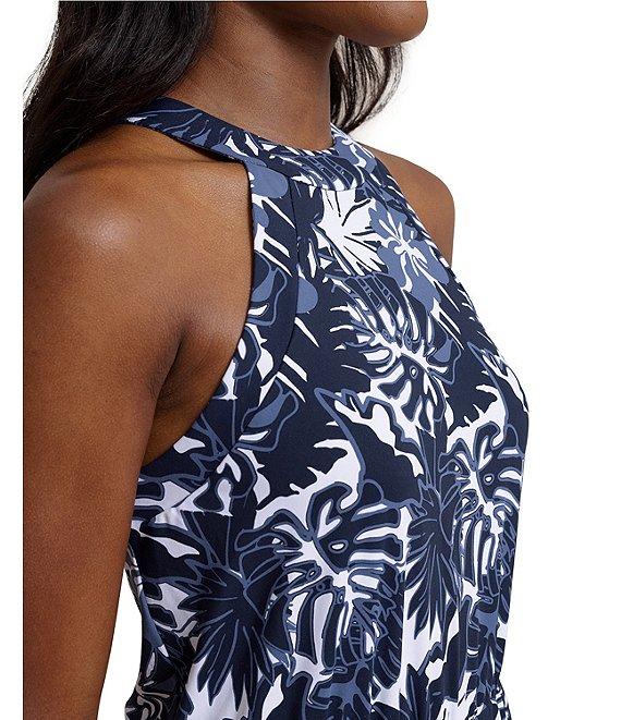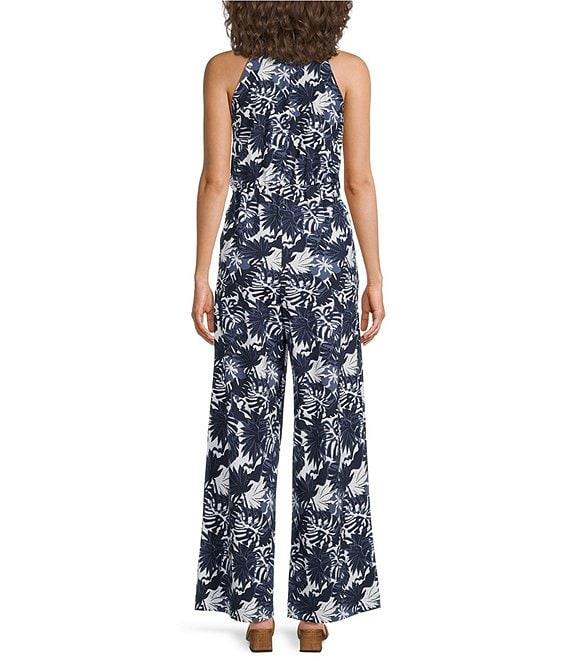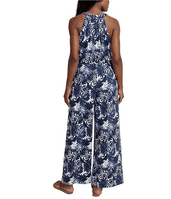 Southern Tide Karrigan Tropical Grand Palms Printed Halter Neck Sleeveless Performance Jumpsuit