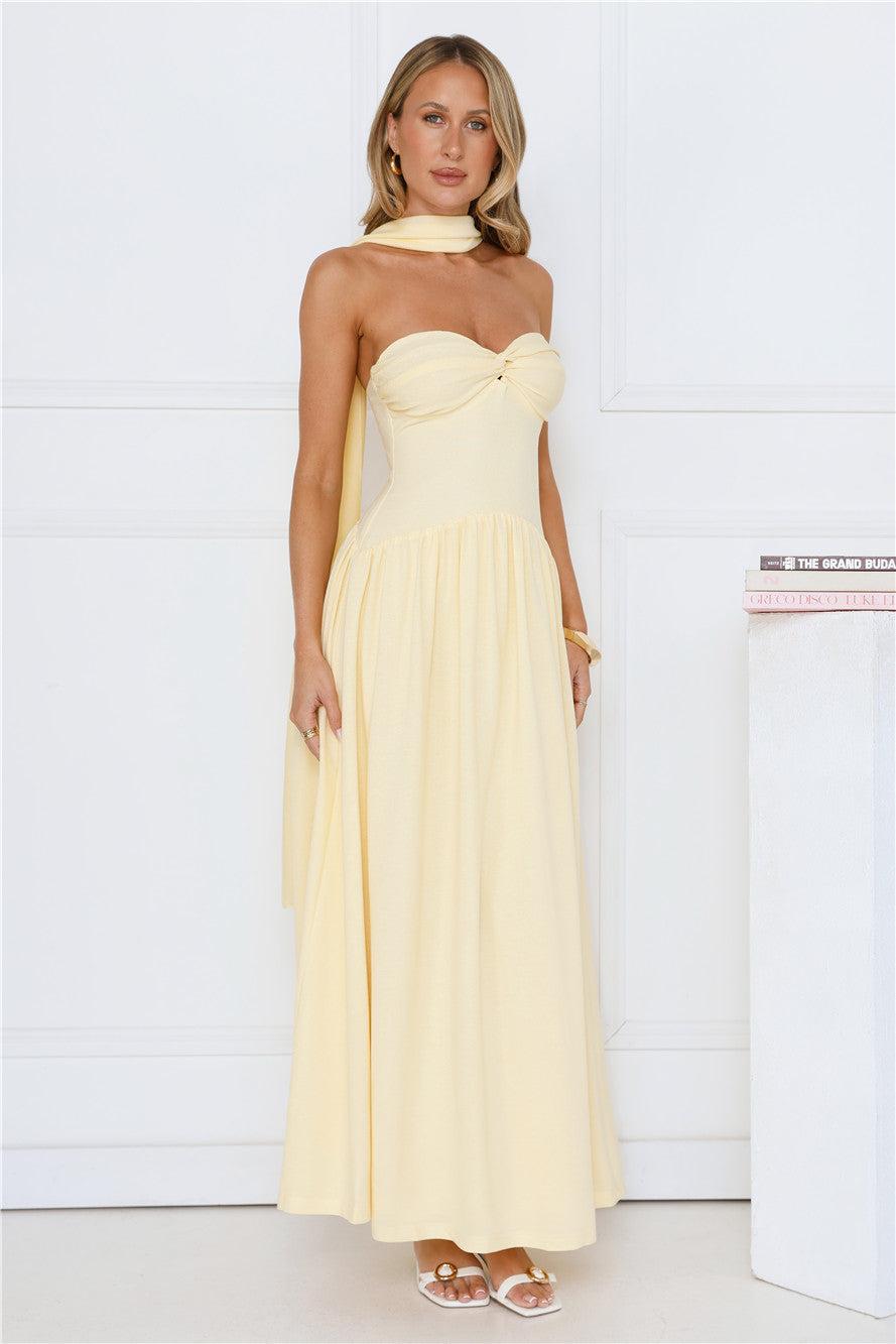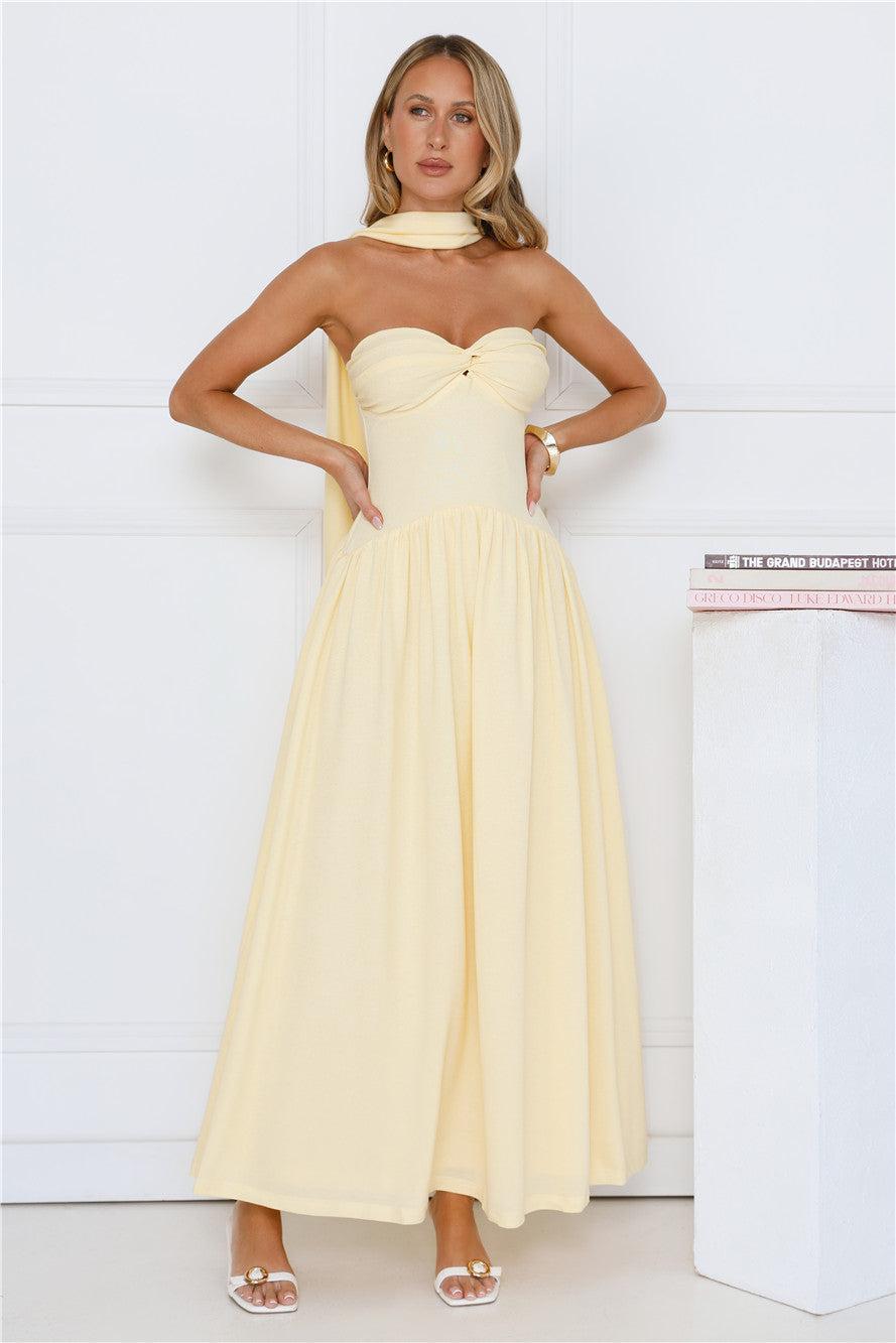 Sparkle In Her Step Strapless Maxi Dress Yellow