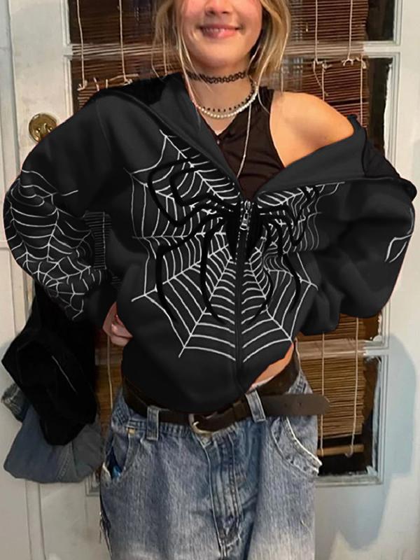 Spider Print Zip Up Hoodie