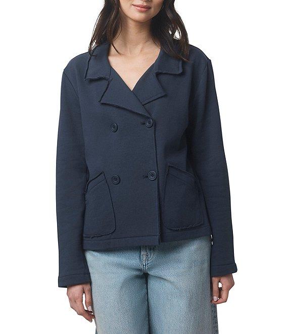 From Splendid, this blazer features: French terry fabrication Notch collar Long sleeves Front pockets Short length Button front closure Approx. 23.5" length Cotton Close fastenings and machine wash separately on a cold and gentle cycle. Do not bleach and use a cool iron, if necessary. Tumble dry on low and remove promptly Imported.