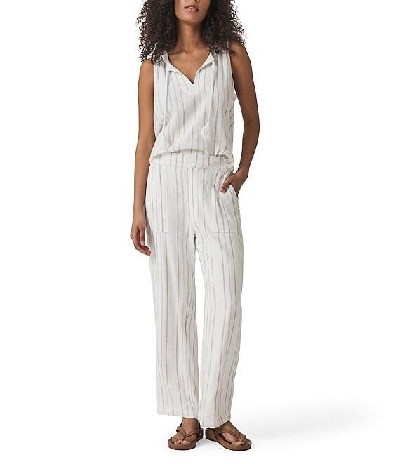 Splendid Layla Knit Linen Blend Striped Mid Rise Lounge Full Length Pants
