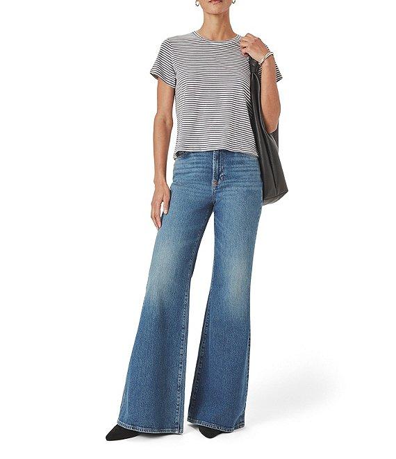Splendid Louisa Knit Stripe Print Crew Neck Short Sleeve Shirt