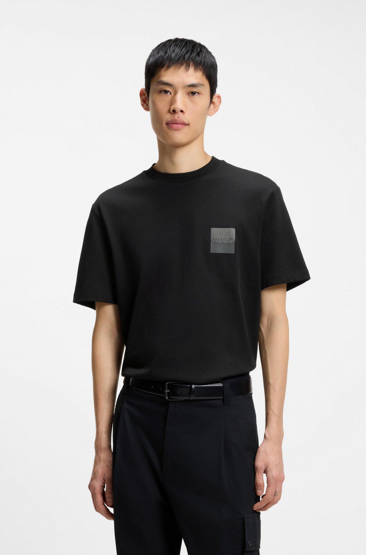 Relaxed-fit T-shirt in cotton with split logos - Black T-Shirts from HUGO for Men for in the official HUGO BOSS Online Store free shipping
