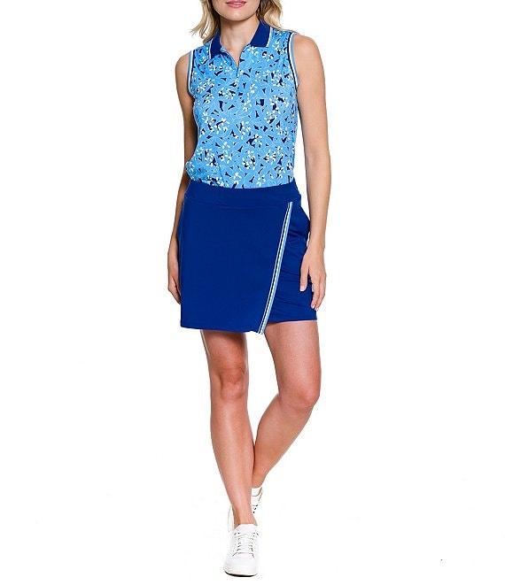 From Sport Haley, this skort features: jacquard fabrication angled varsity stripe back pleats front and back pockets pull-on construction approx. 16" length polyester/spandex machine wash, tumble dry Imported.
