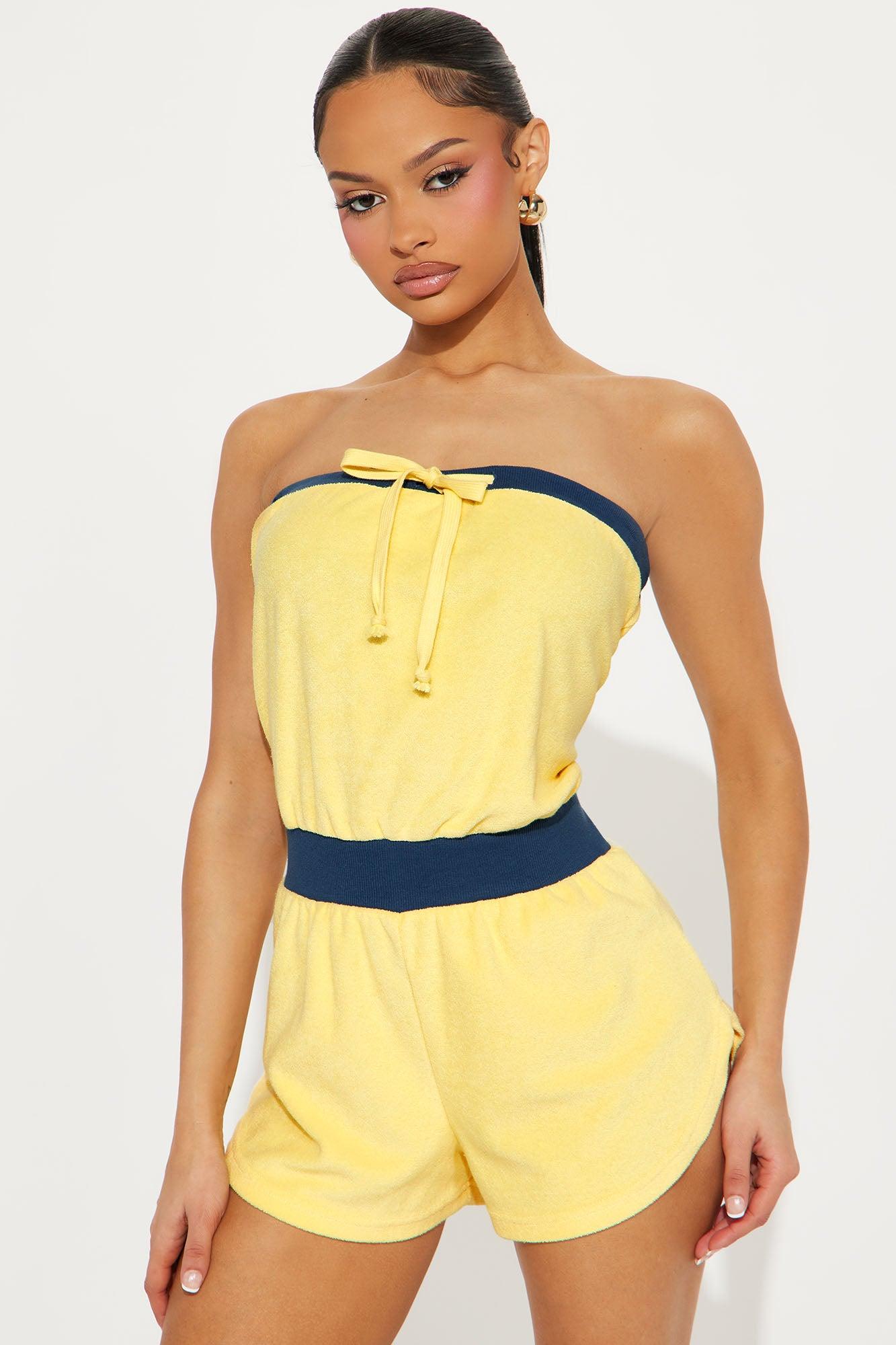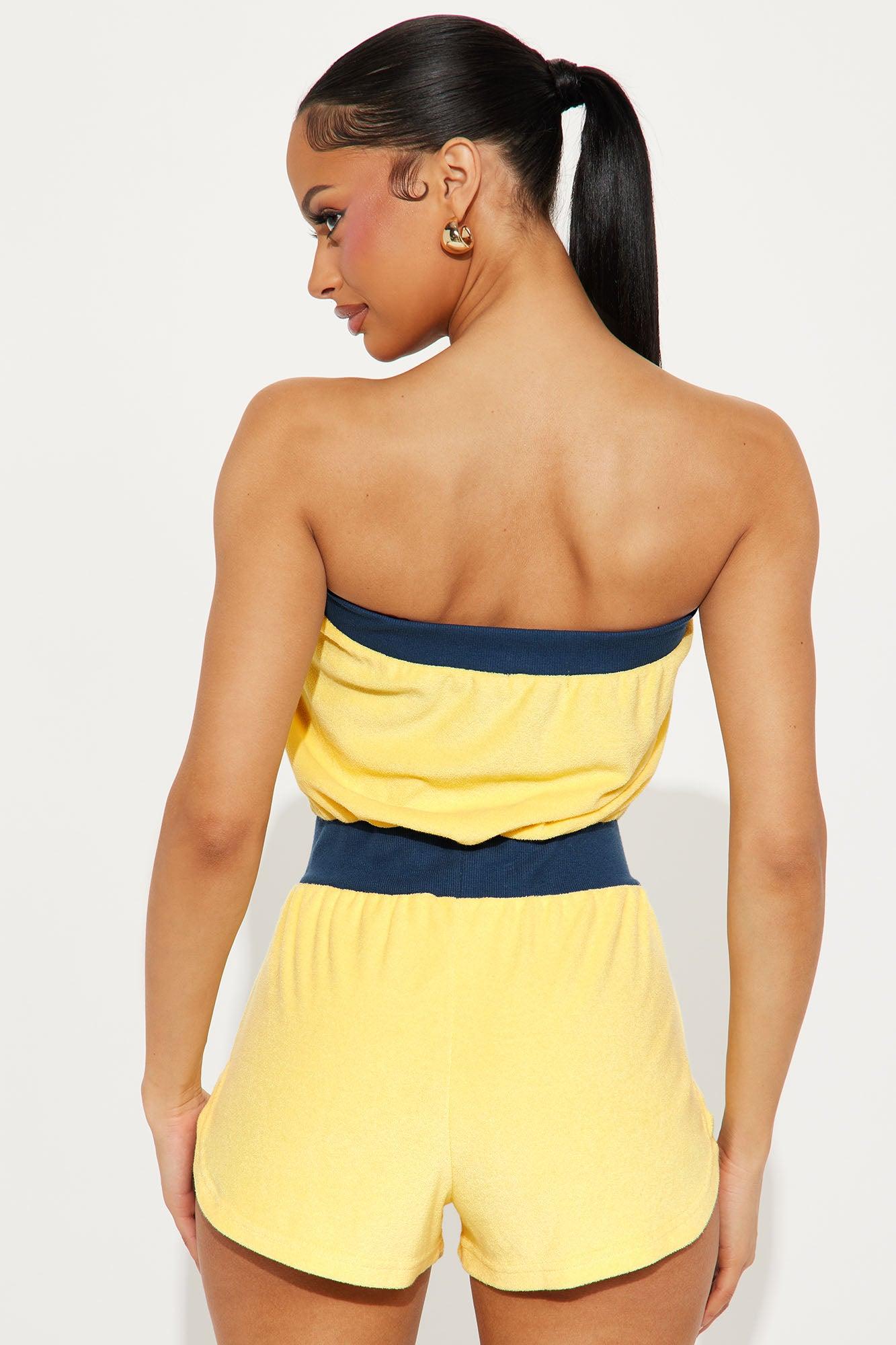 Sporty Terry Cloth Romper - Yellow/combo