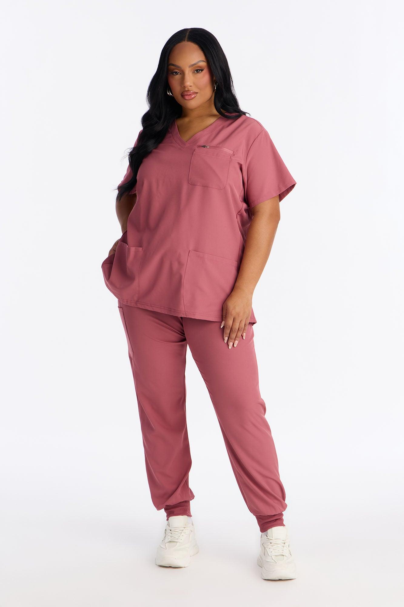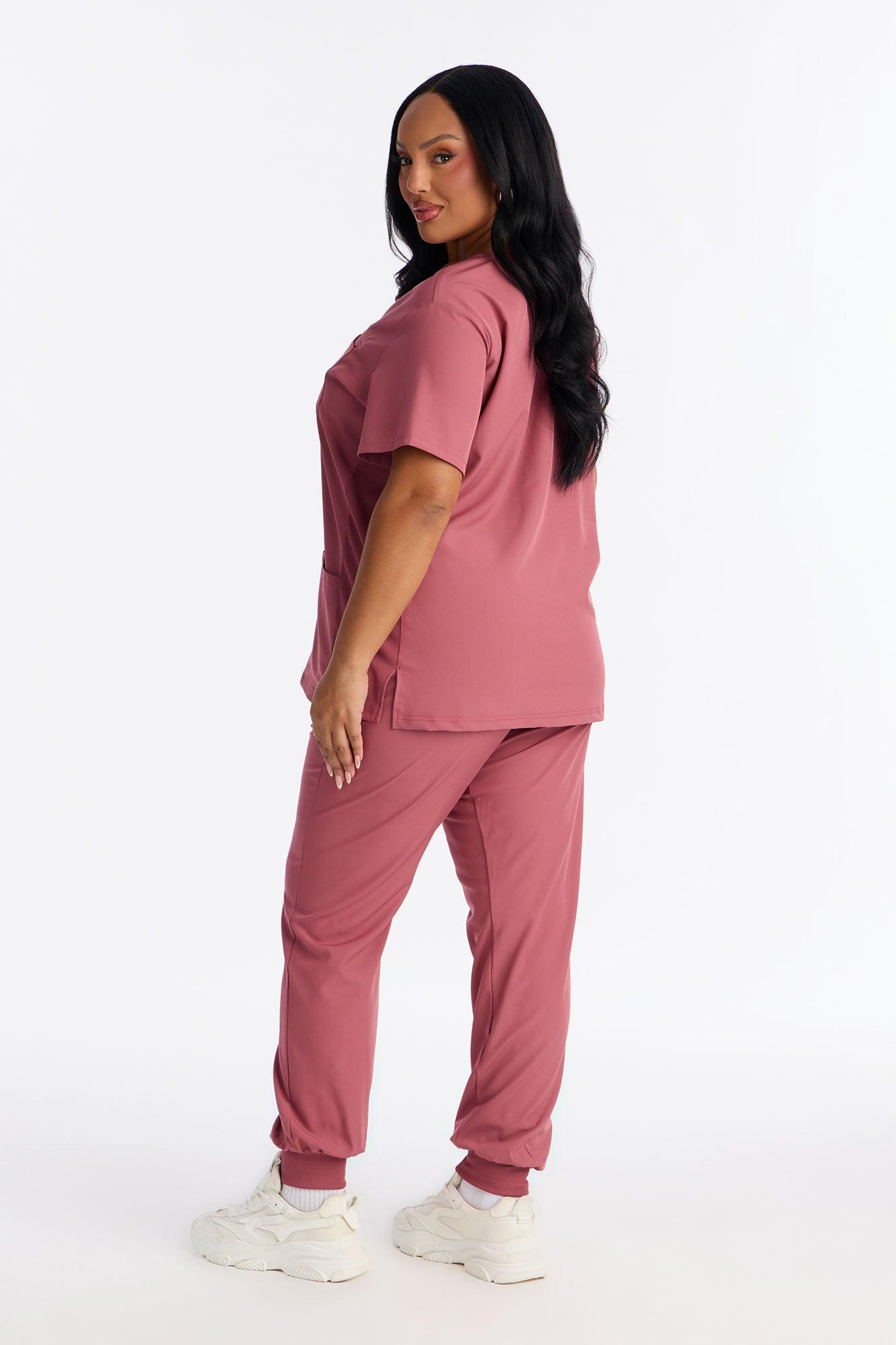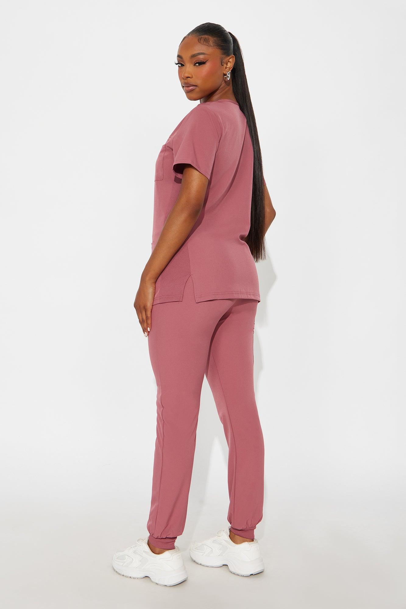 Available In Rose And Wine. Uniform Scrub Set Short Sleeve Bungee Detail Front Side Pocket Elastic Drawstring Waistband Patch Pocket Detail Elastic Jogger Cuff Stretch Self: 93% Polyester, 7% Spandex Final Sale Imported California Proposition 65WARNING: Cancer and Reproductive Harm - www.P65Warnings.ca.gov.