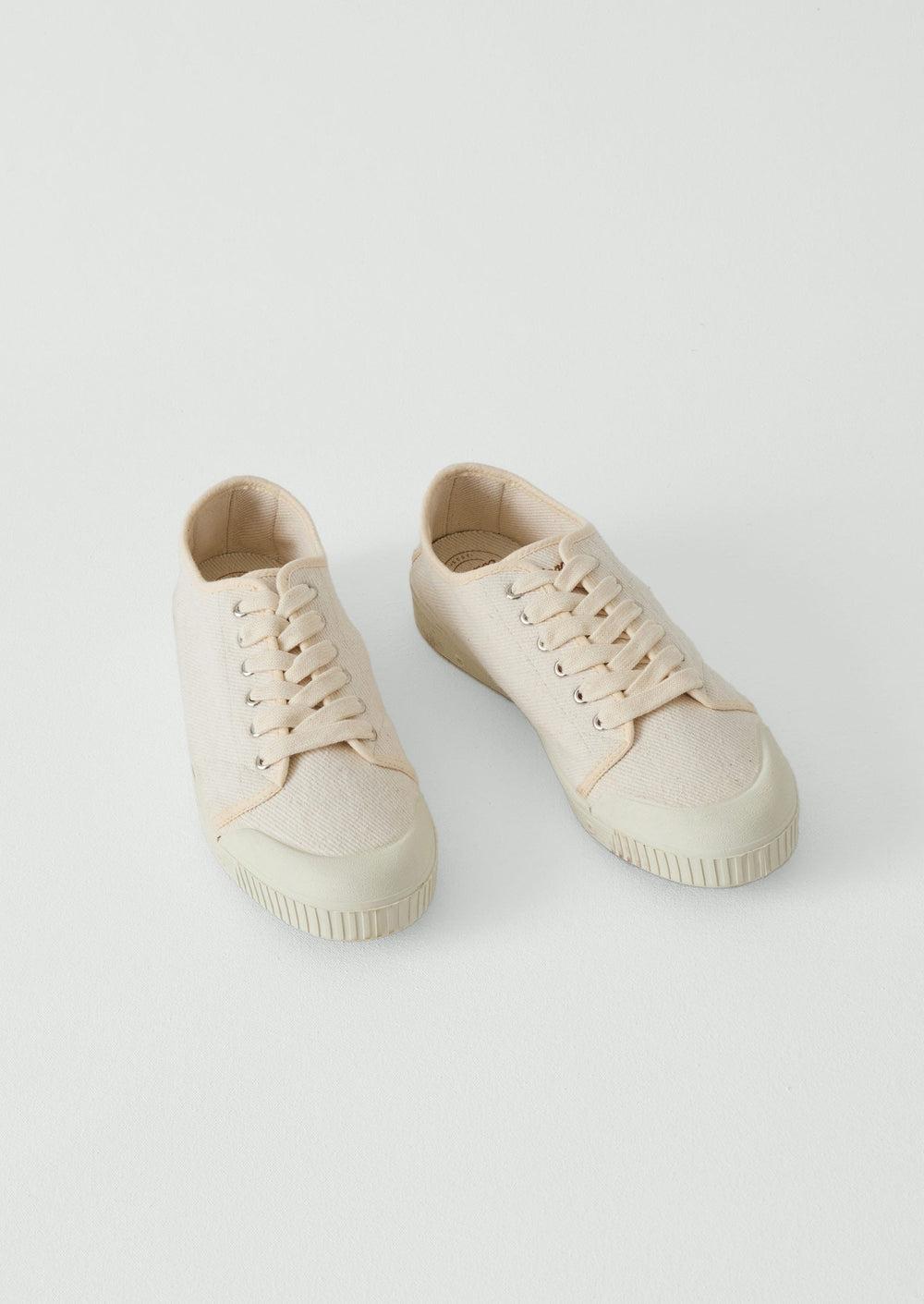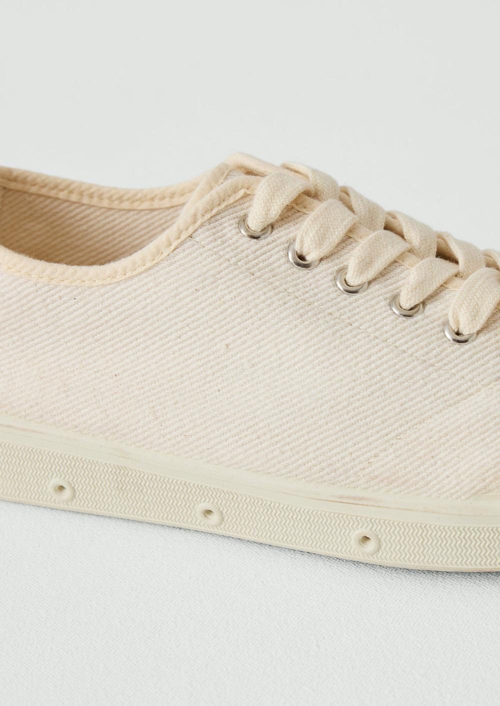 Cotton twill. Cotton laces. Vulcanised rubber sole.