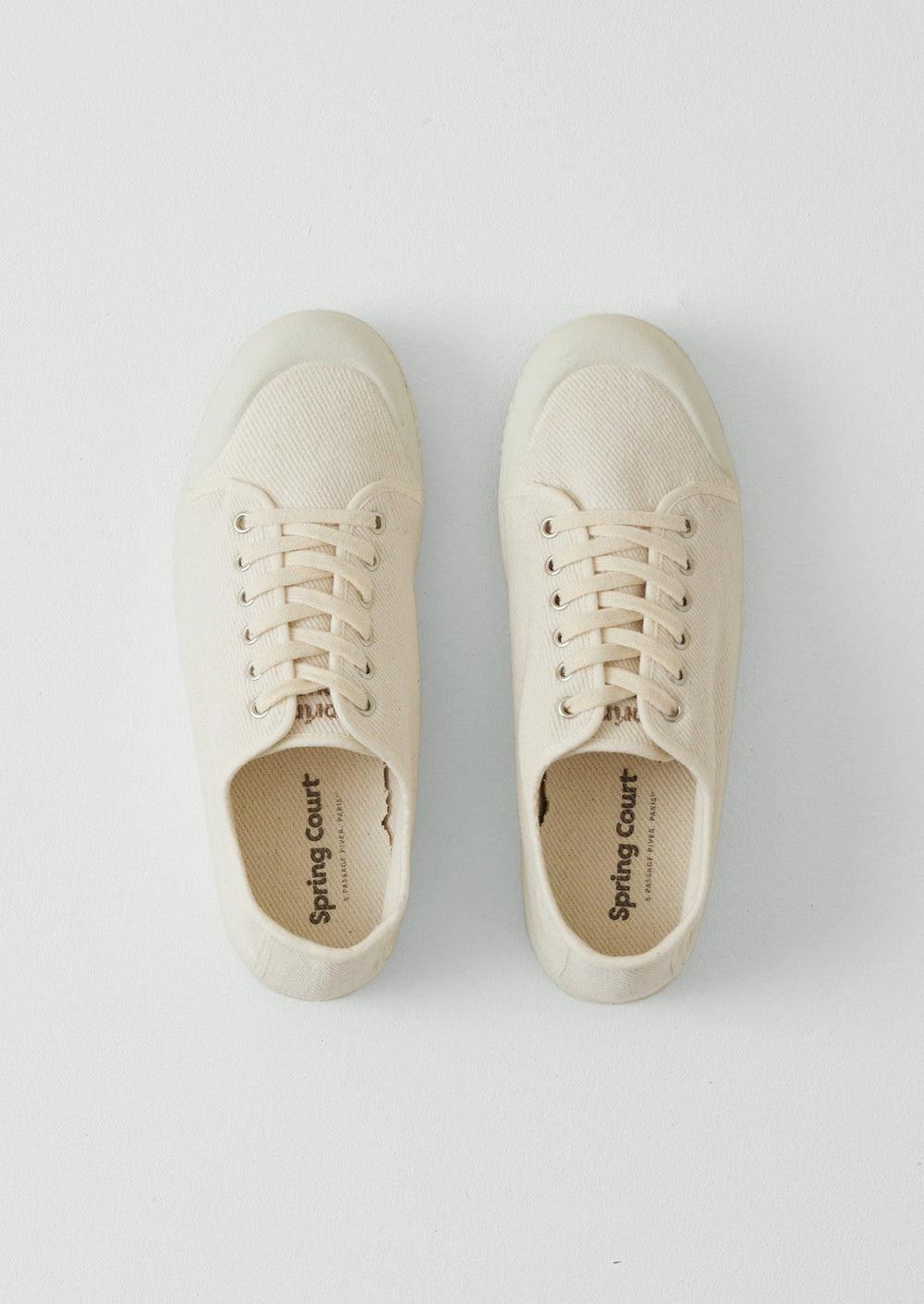 Our plimsolls are made by Spring Court and echo original tennis shoes created by Georges Grimmeisen in the 1930s. Made from heavy cotton twill and finished with cotton laces. Also available in Women's sizes.