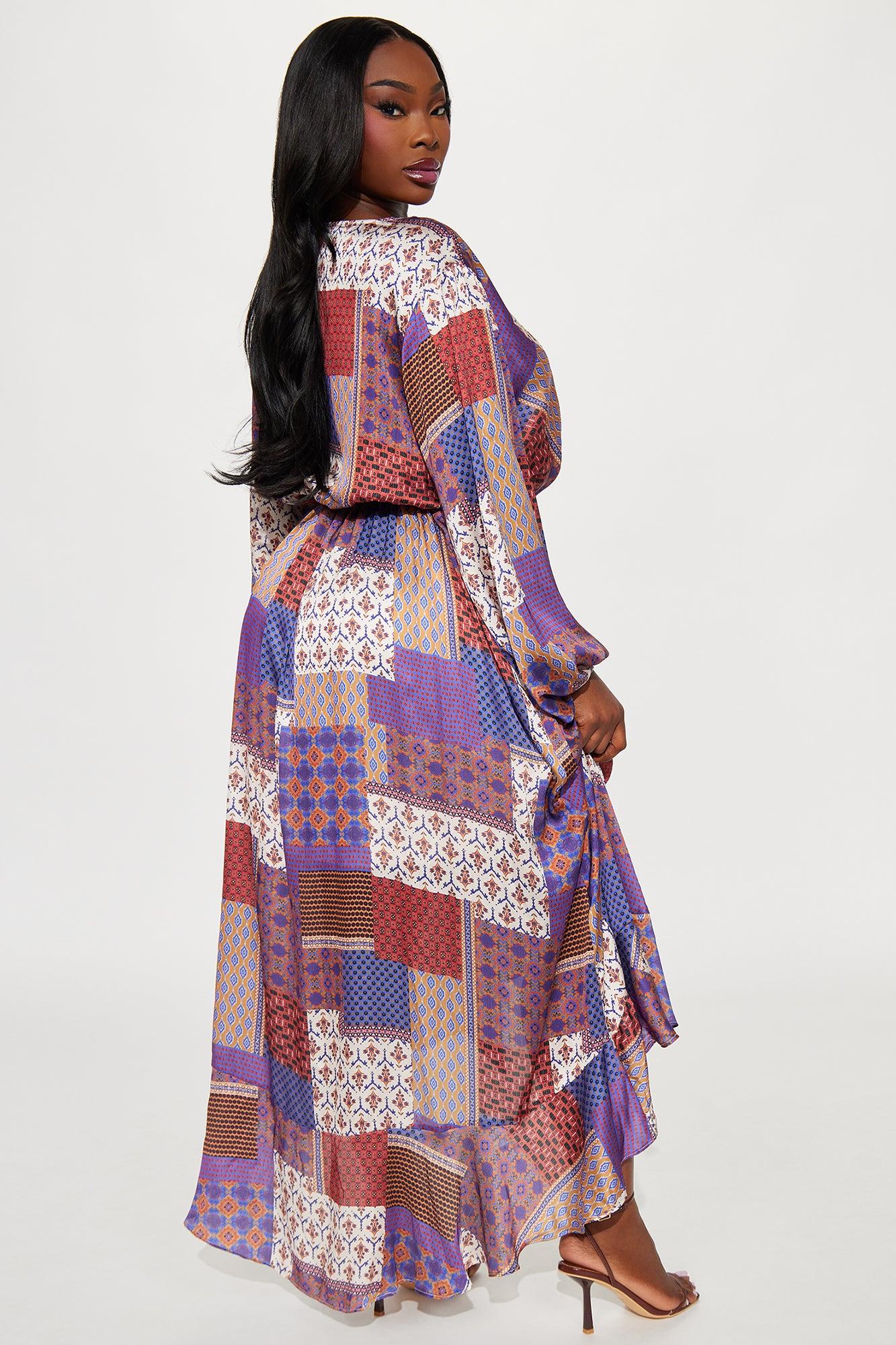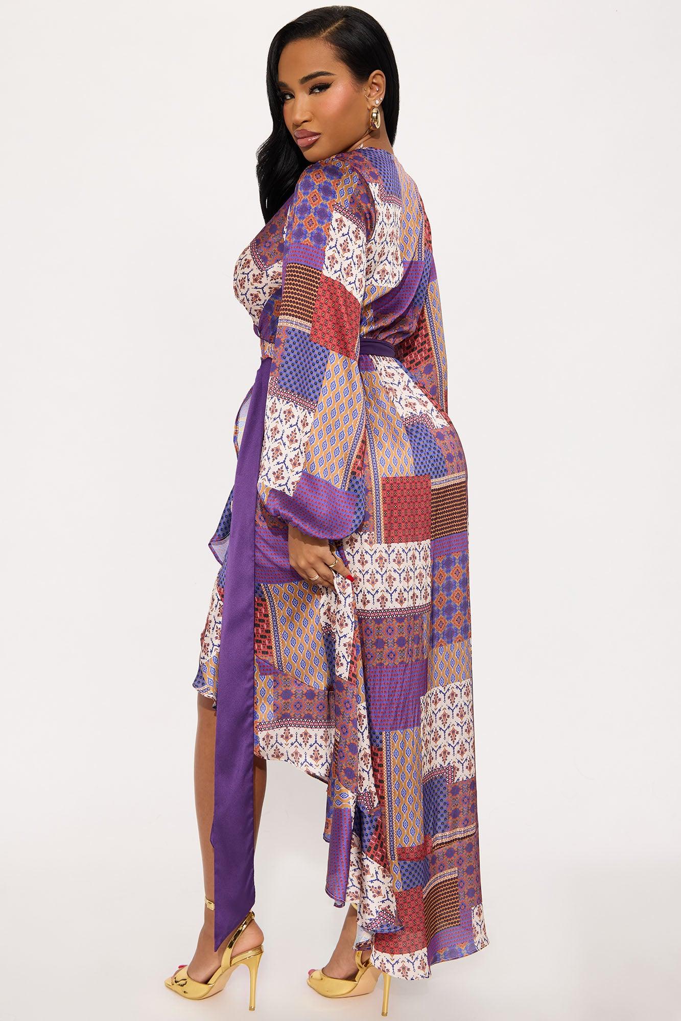 Sprint Satin Patchwork Maxi Dress - Magenta Female